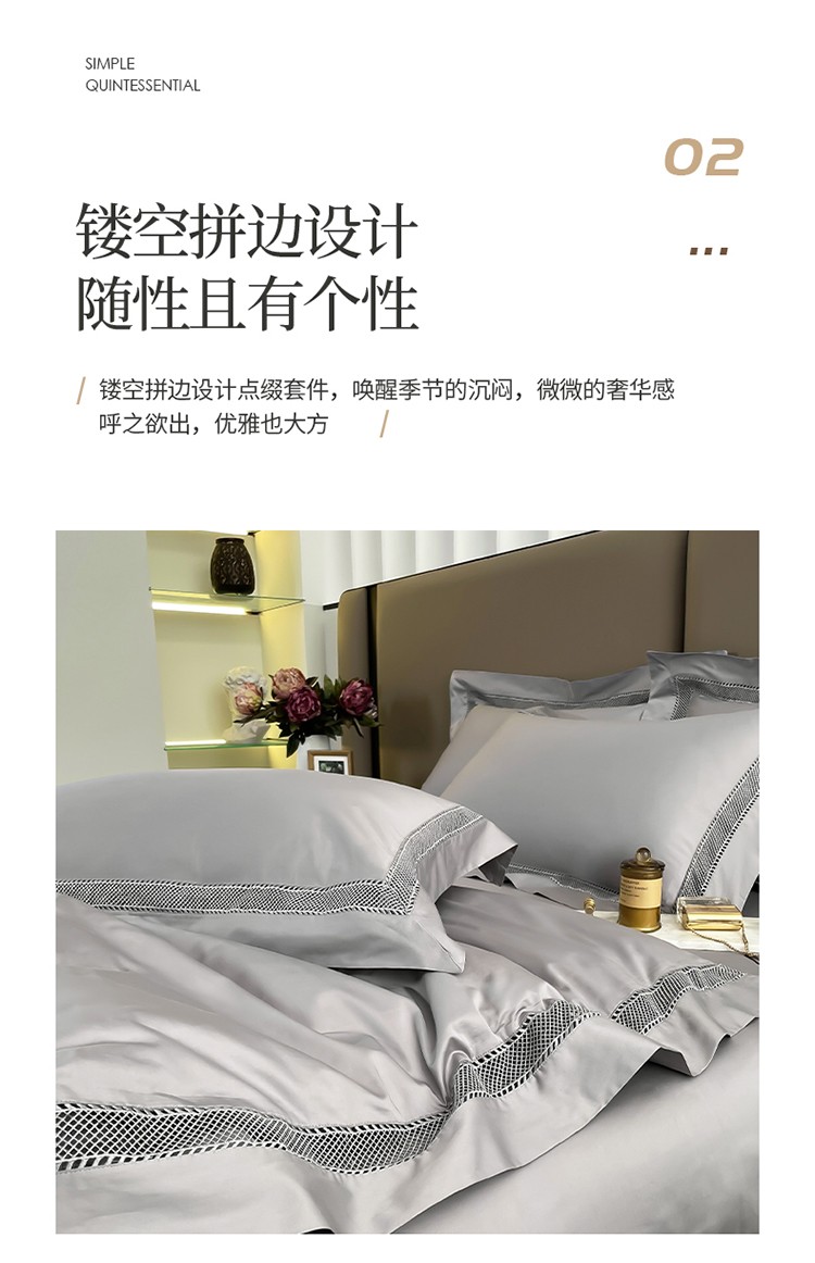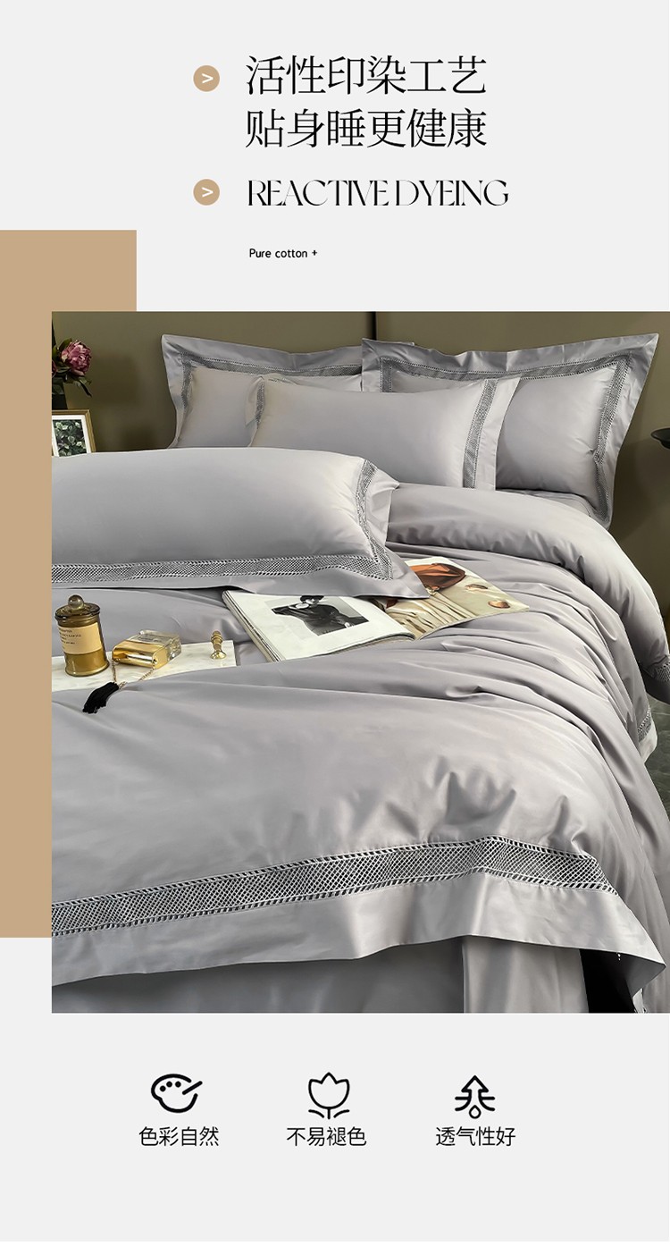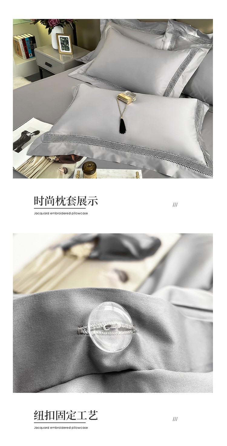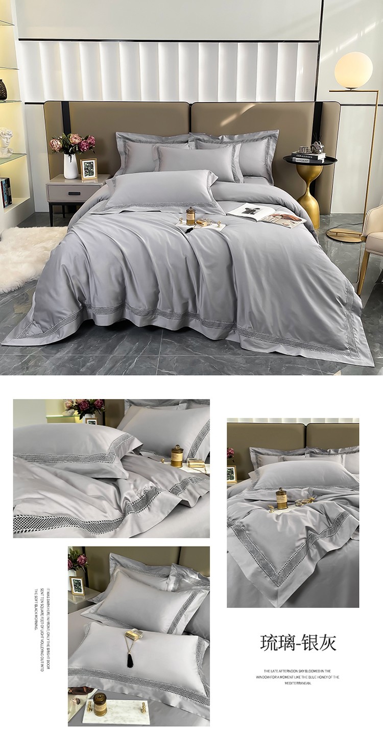 商品名称:帅露家纺 2022新款140s镂空拼边四件套 琉璃-银灰
