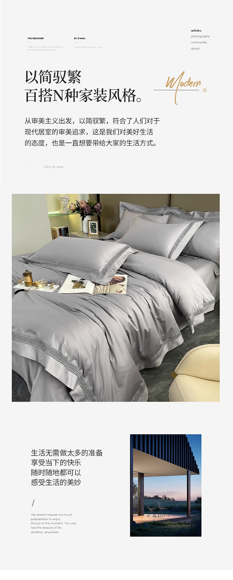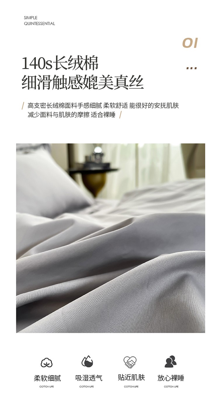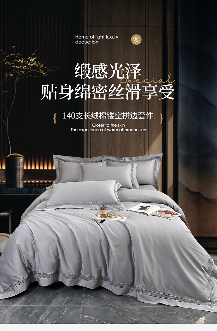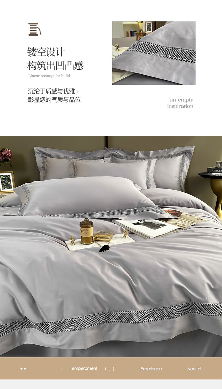 商品名称:帅露家纺 2022新款140s镂空拼边四件套 琉璃-银灰