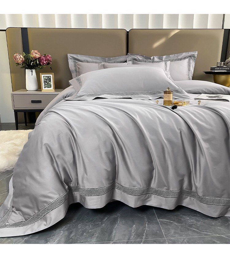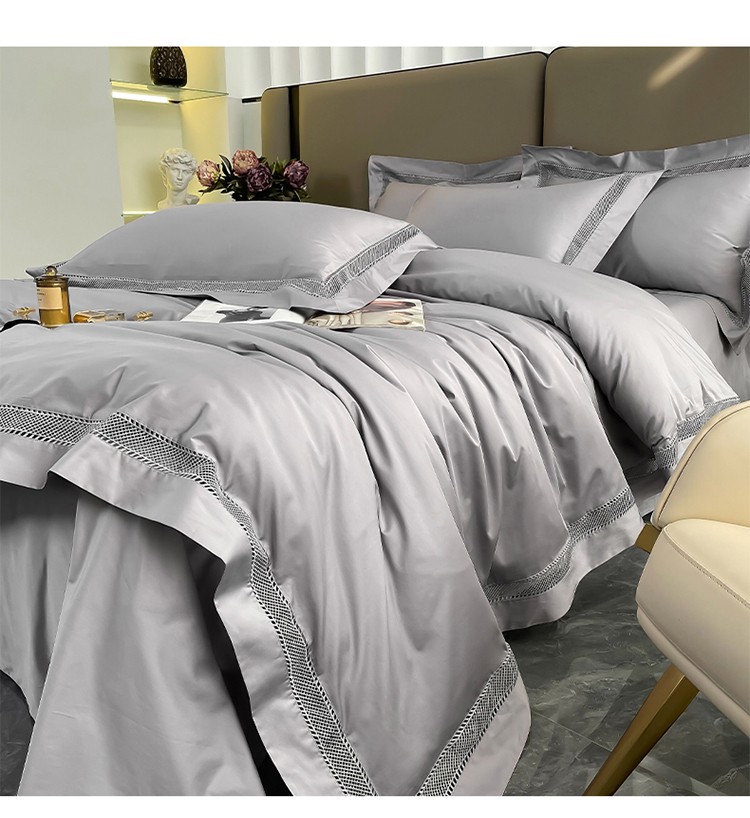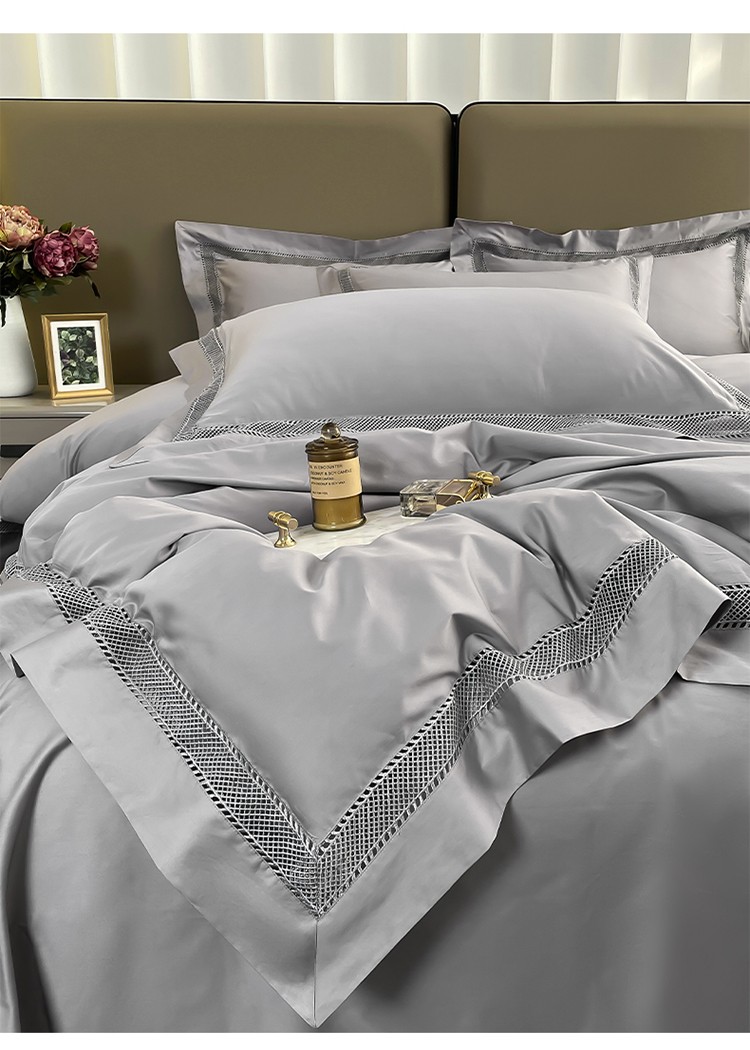 帅露家纺 2022新款140s镂空拼边四件套 琉璃-银灰