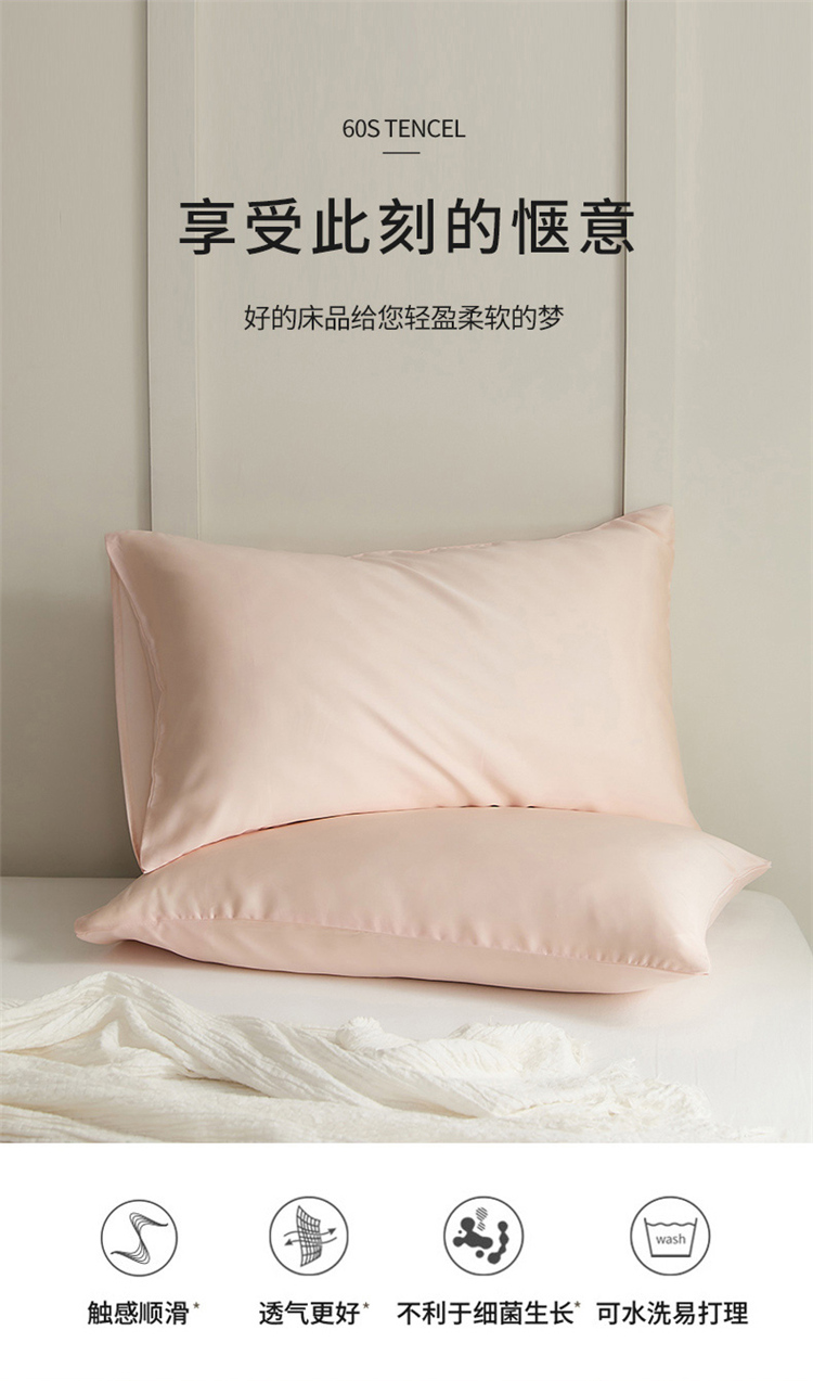商品名称:新款60支天丝单品系列-枕套桃粉色