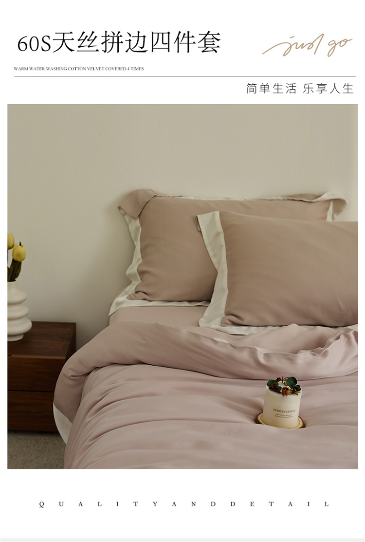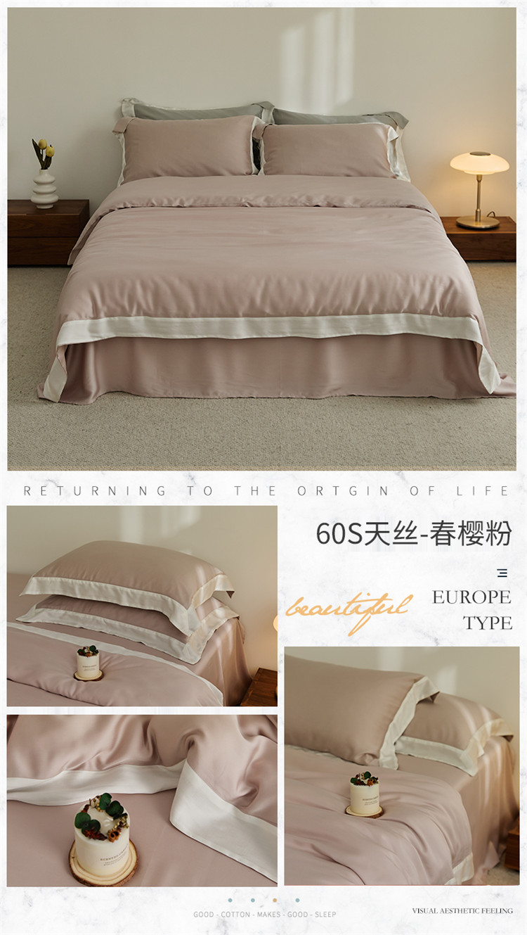当前位置: 91家纺网 > 商品网购 > 床品套件 > 四件套 > 莱赛尔四件套 > 新款60支天丝拼边款四件套 春樱粉