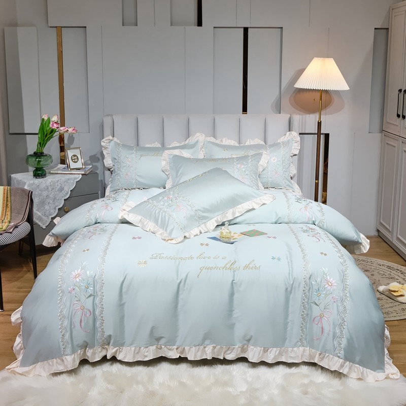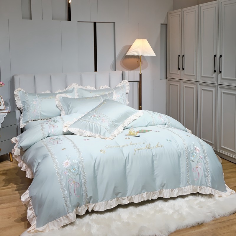 商品名称:星尚 2022新款100支长绒棉四件套-花田森 浅蓝