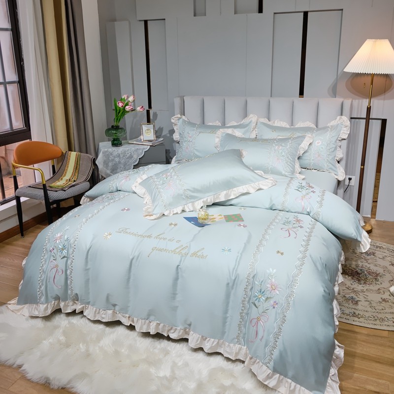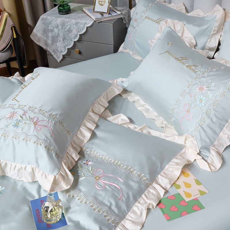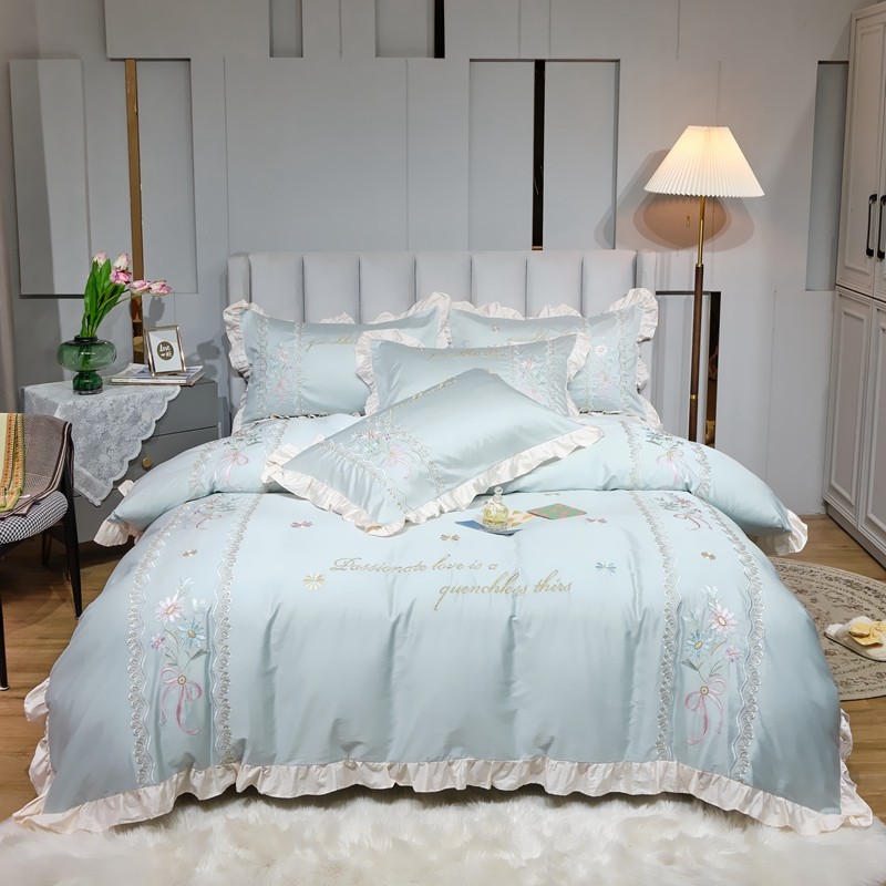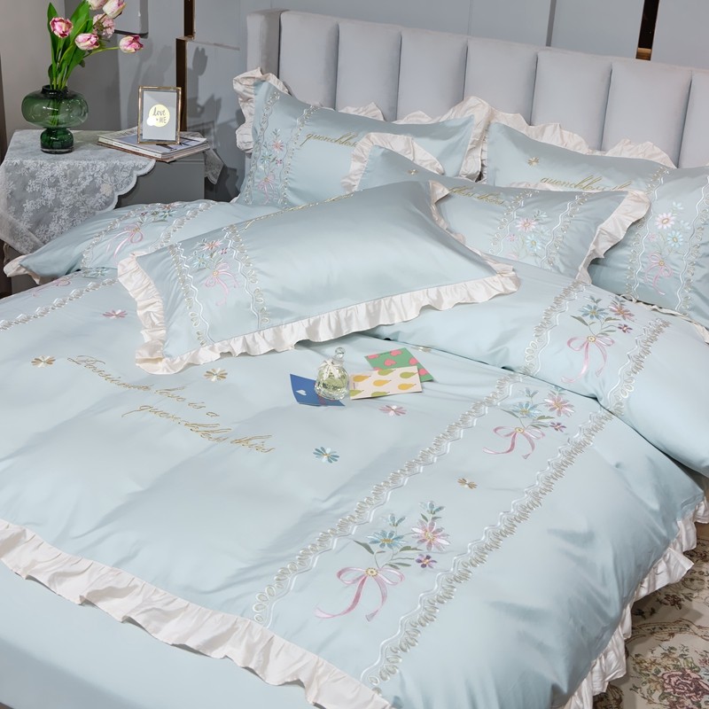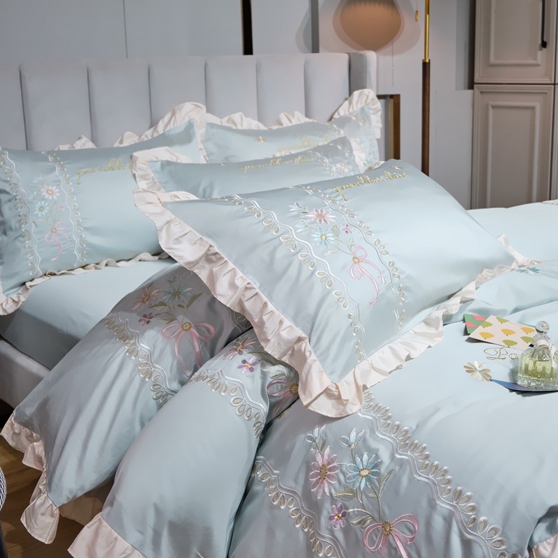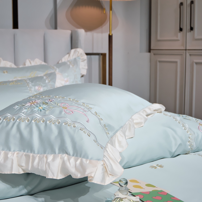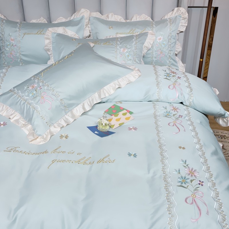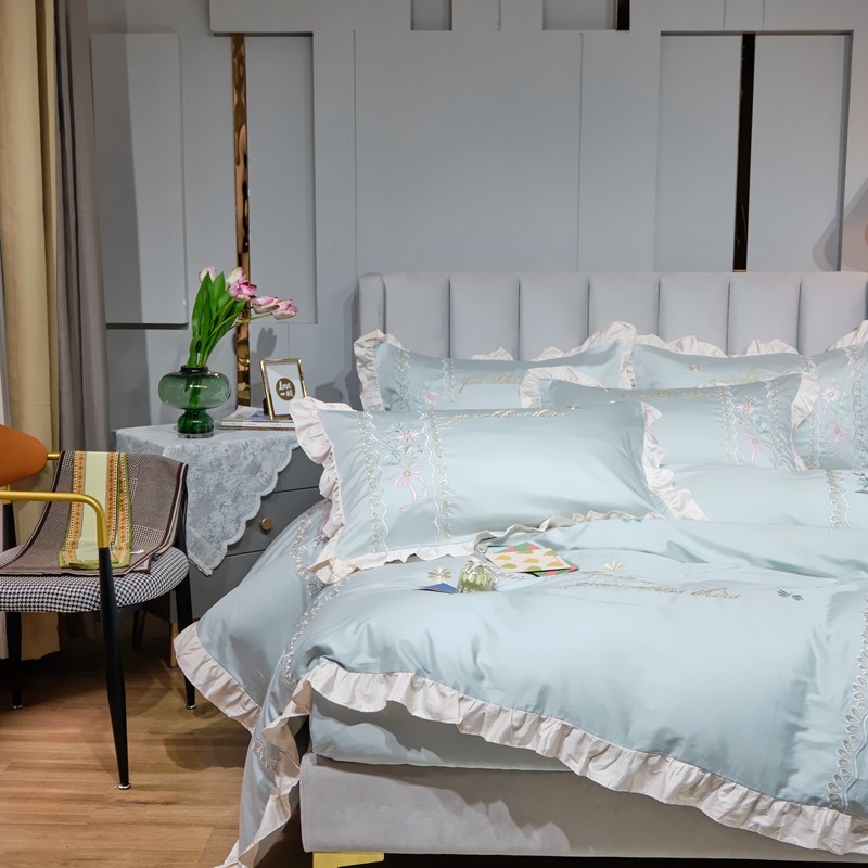 星尚 2022新款100支长绒棉四件套-花田森 浅蓝