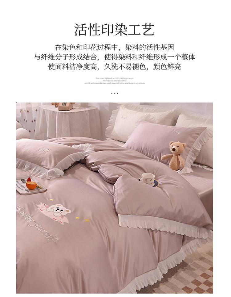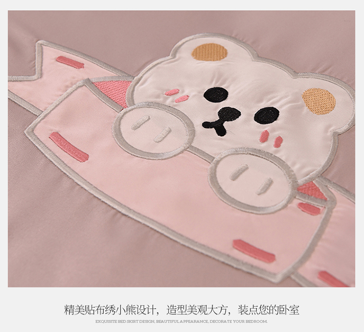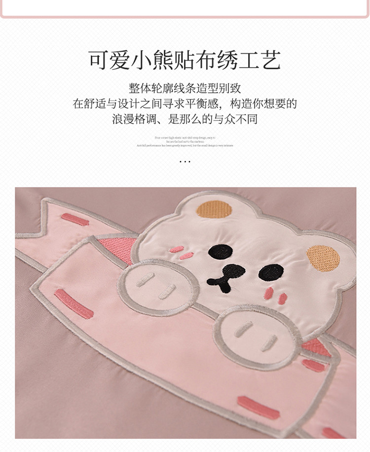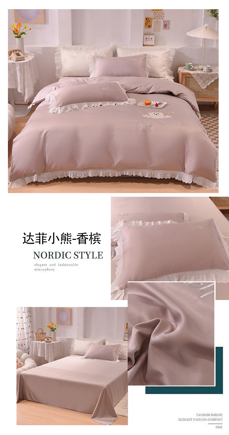 商品名称:艾米家居 2025新款水洗真丝雪纺花边贴布绣四件套-达菲小熊 香槟