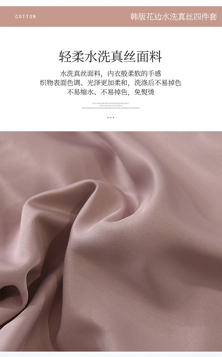 (总)艾米家居 2026春夏水洗真丝花边款四件套-春漾系列,珍珠白,公主粉,青苹绿,水波蓝,浅藕色