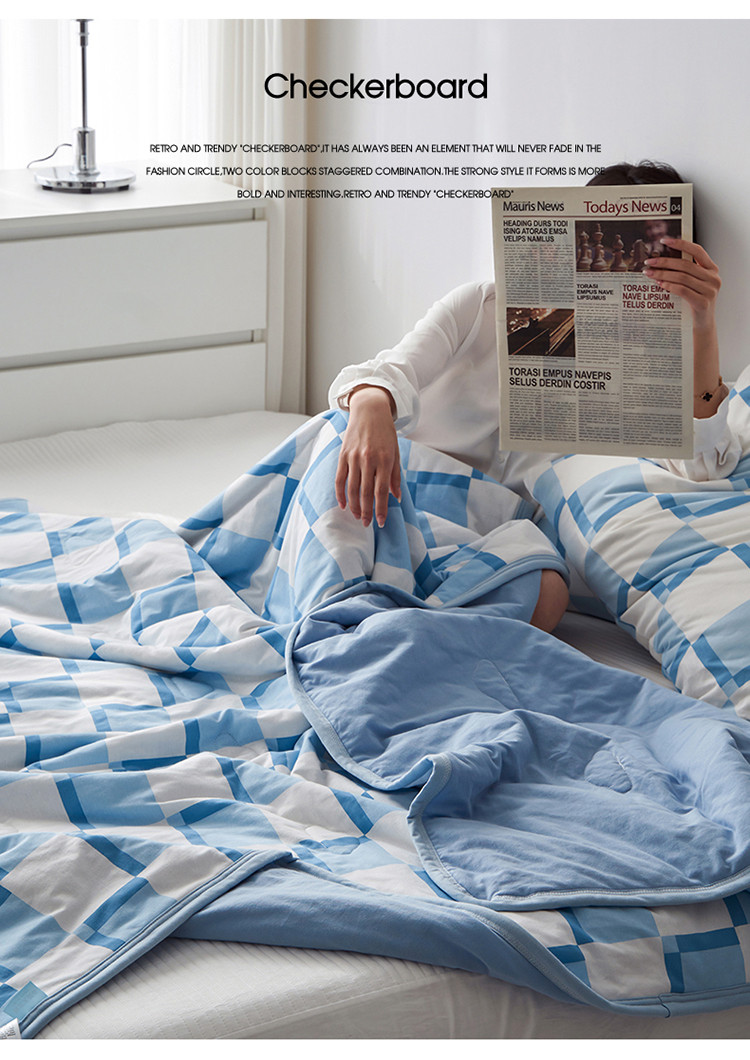 商品名称:风向标家纺 2022新款印花三色棋盘格针织夏被 海盐雪糕