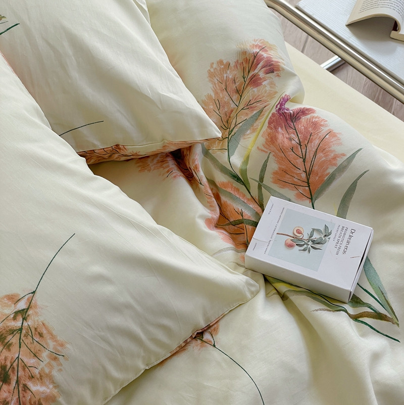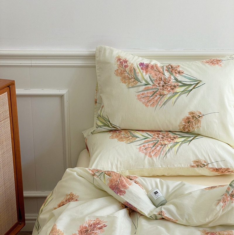 (总)窝米2022新款13370全棉四件套花卉系列,春风里,青柚,秋收,水波纹米驼,水波纹炭黑,恬谧,夏花,云溪红,云溪黄