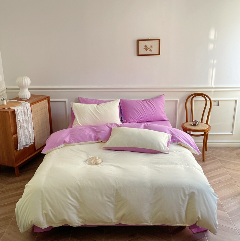 (总)窝米 2022夏季新品素色双拼水洗棉四件套