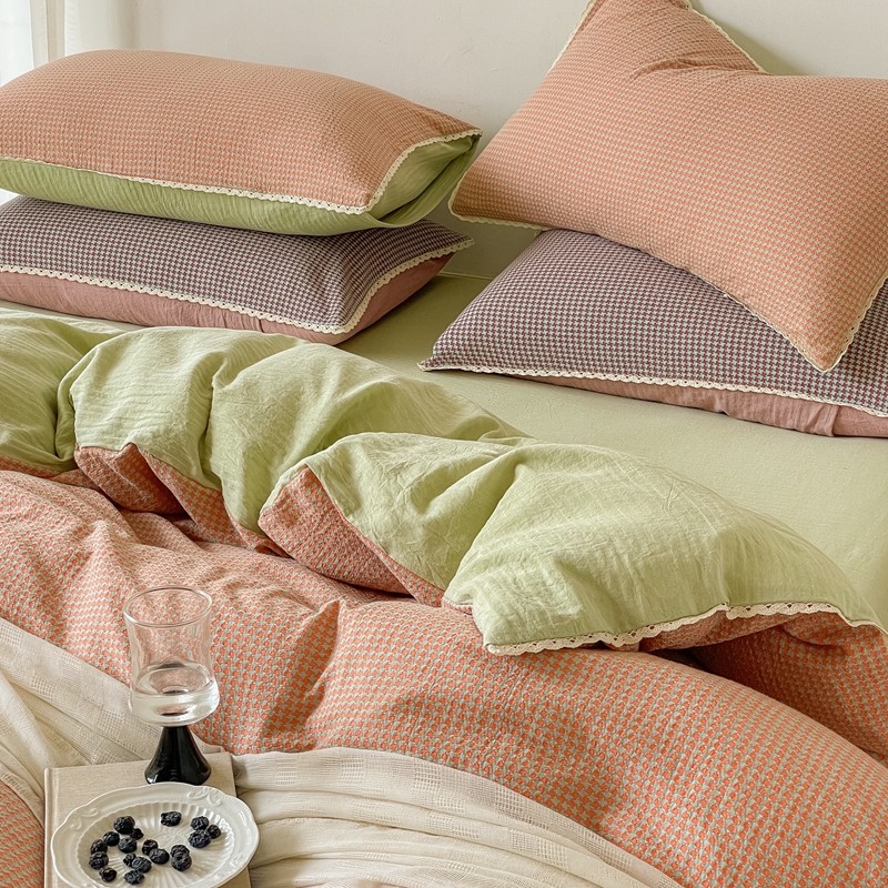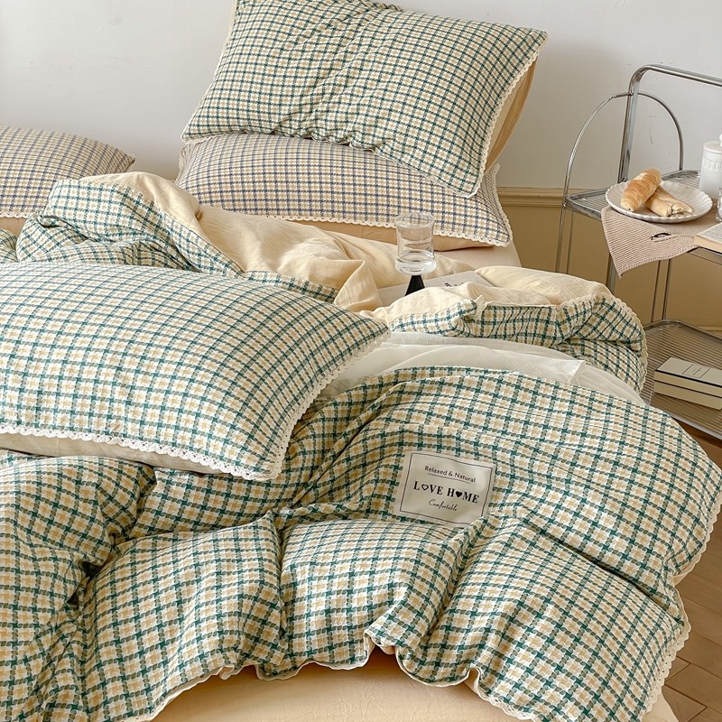 当前位置: 91家纺网 > 商品网购 > 床品套件 > 四件套 > 全棉普通四件套 > (总)圆岛 2022新款色织小提花花边款全棉水洗棉四件套