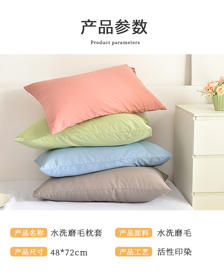 商品名称:极梦 2025新款纯色水洗棉磨毛单枕套枕头保护套