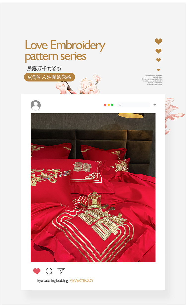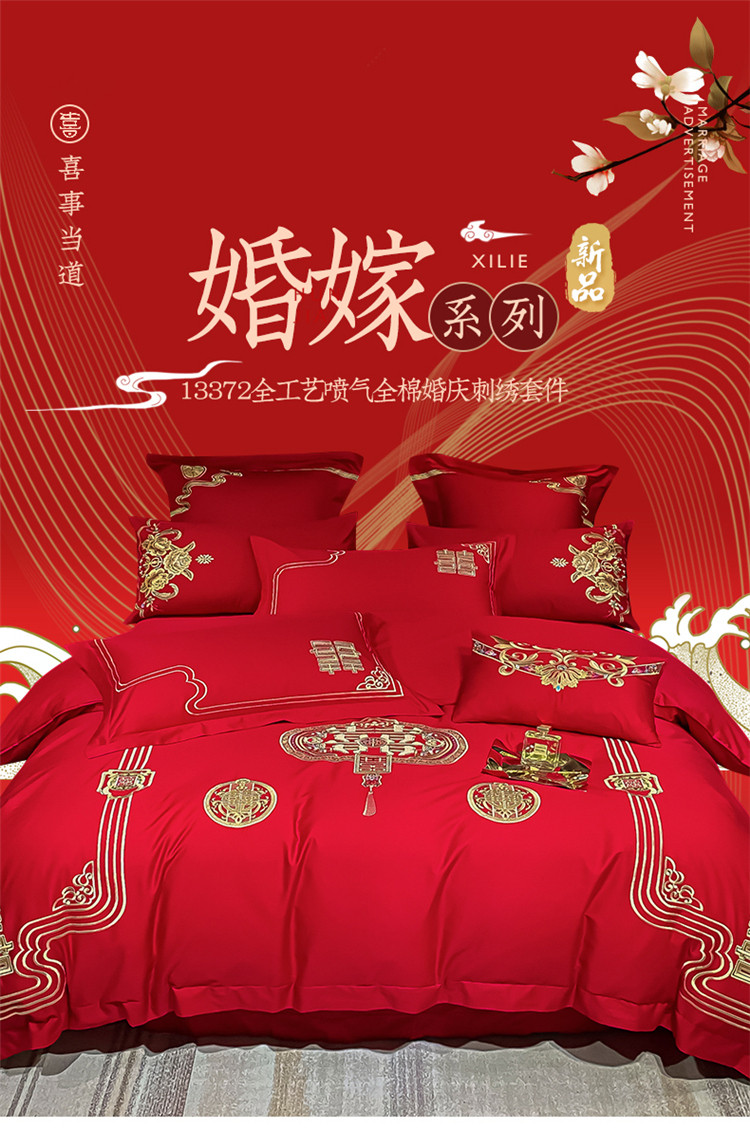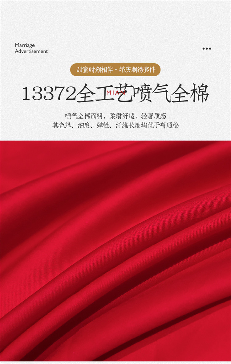 当前位置: 91家纺网 > 商品网购 > 床品套件 > 四件套 > 婚庆四件套 > 千禧 2022新款全工艺喷气全棉婚庆套件 朝朝暮暮