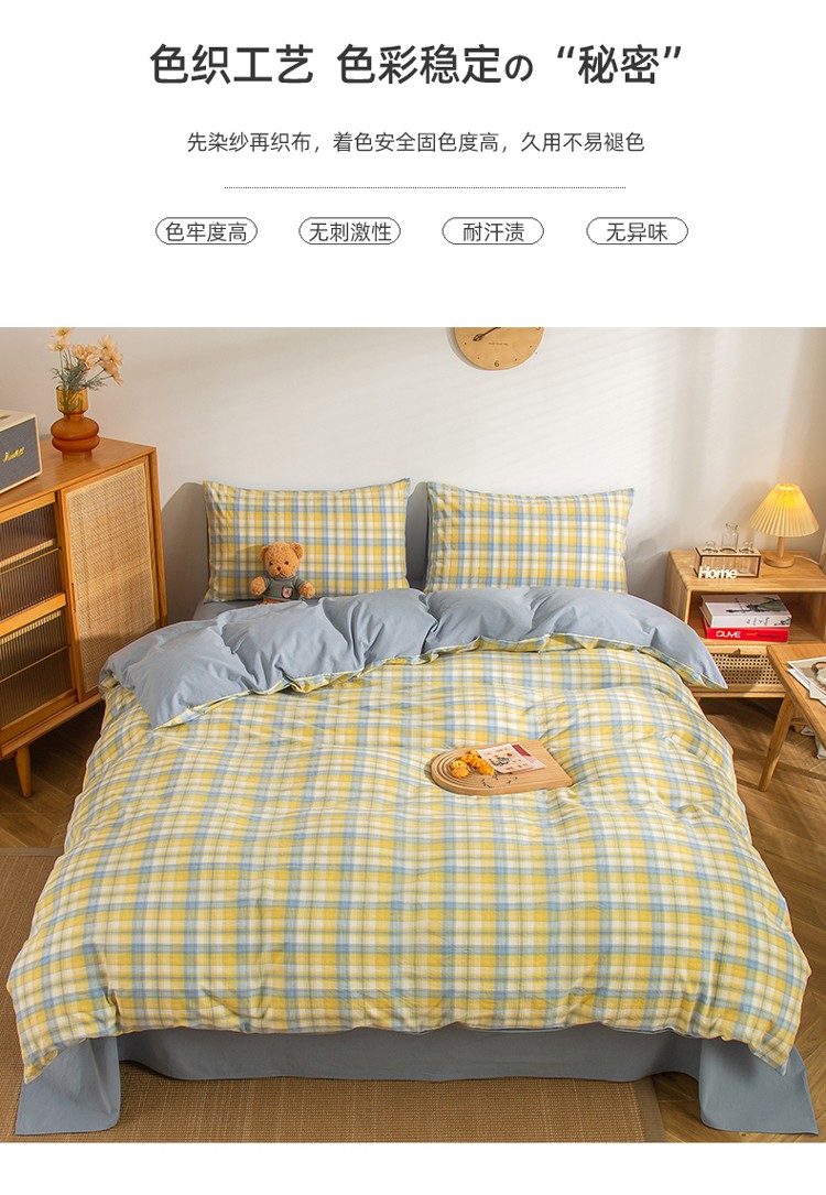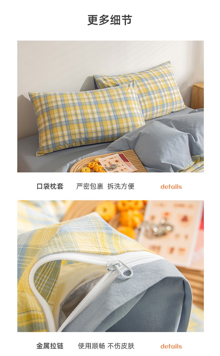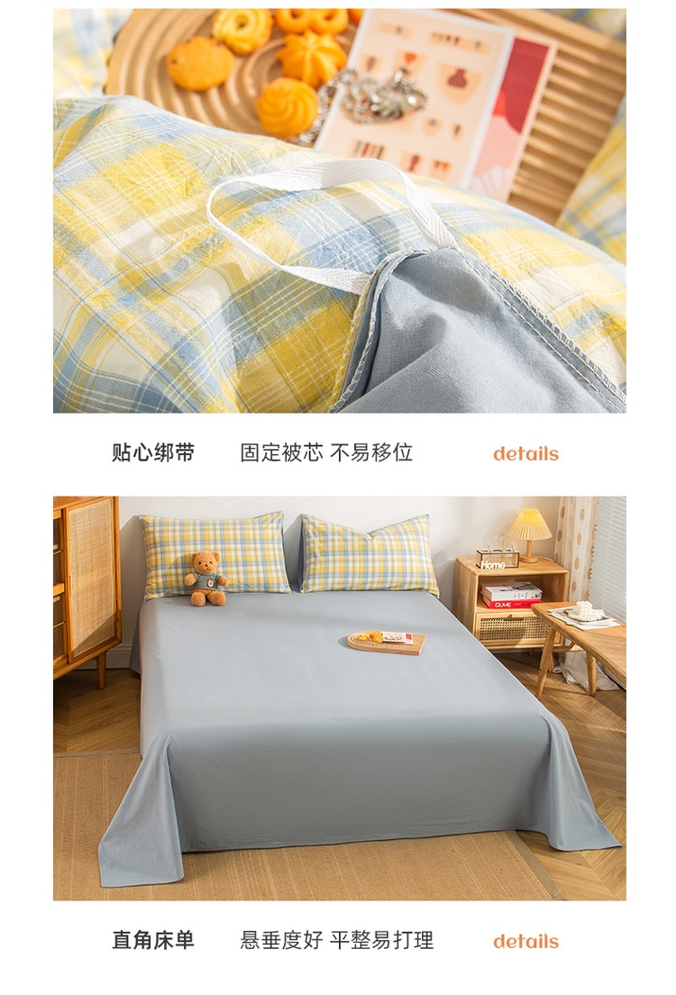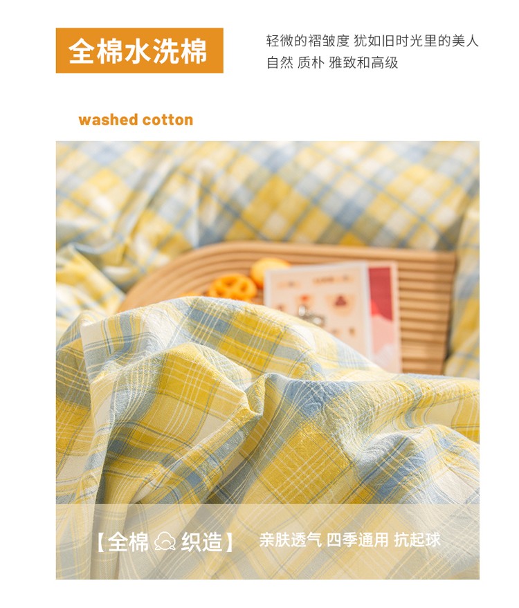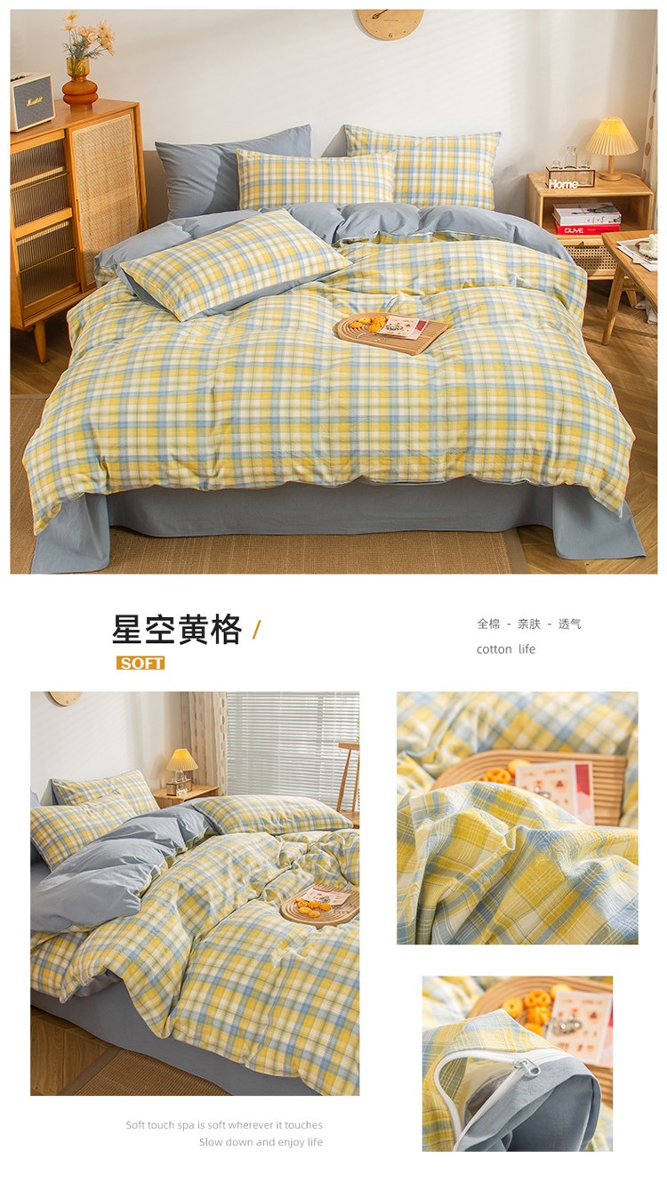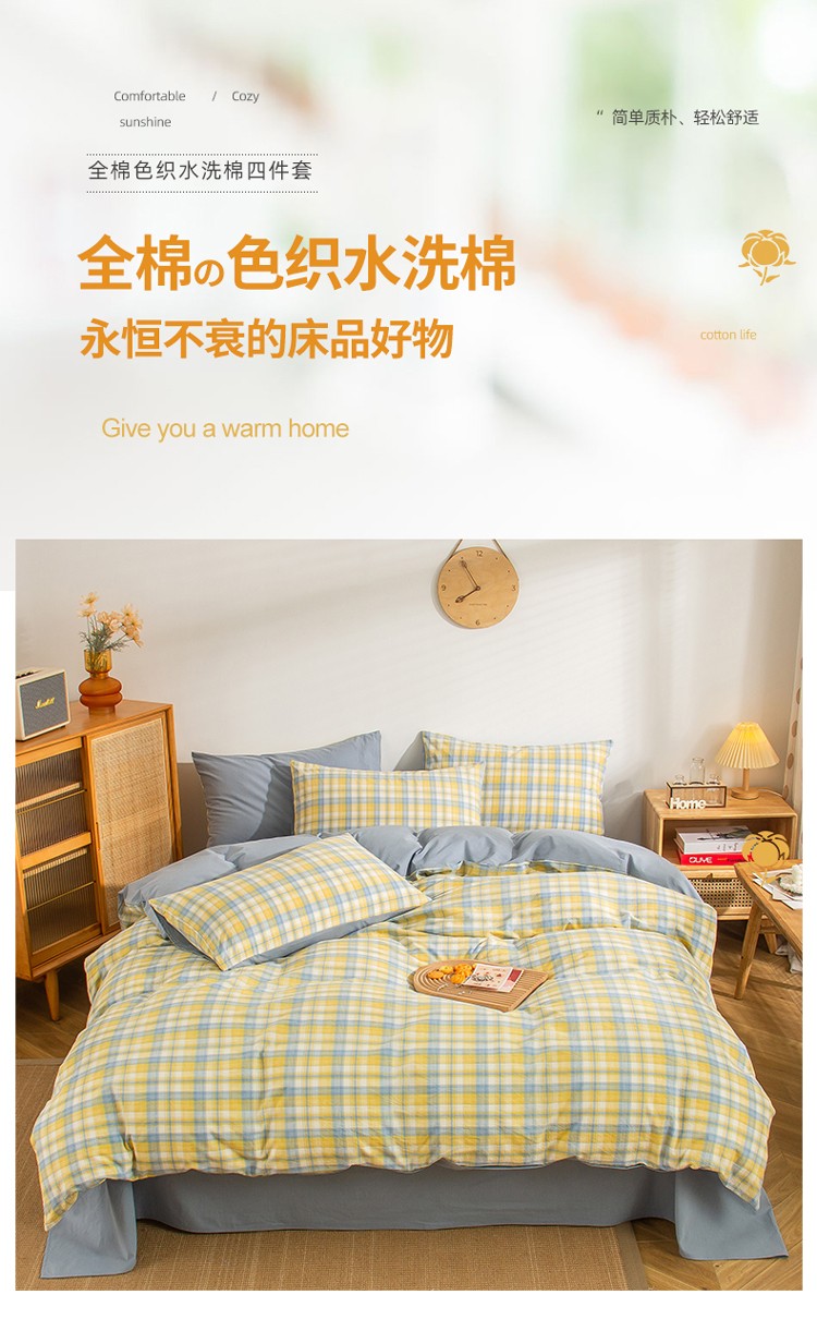 当前位置: 91家纺网 > 商品网购 > 床品套件 > 四件套 > 水洗棉四件套 > 柠萌家居 2022新款A类全棉色织水洗棉无印风格四件套 星空黄格