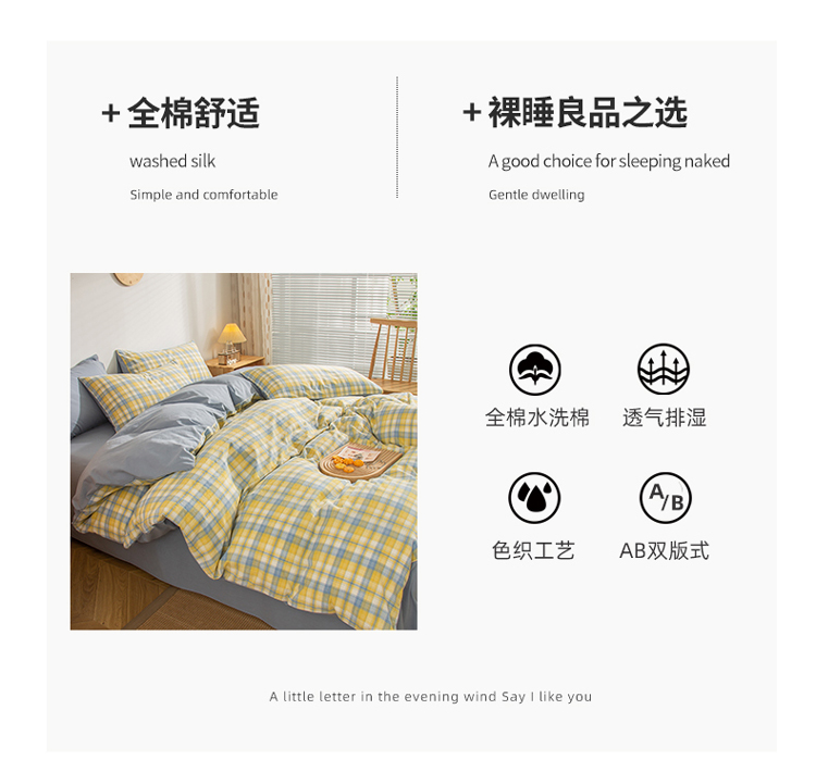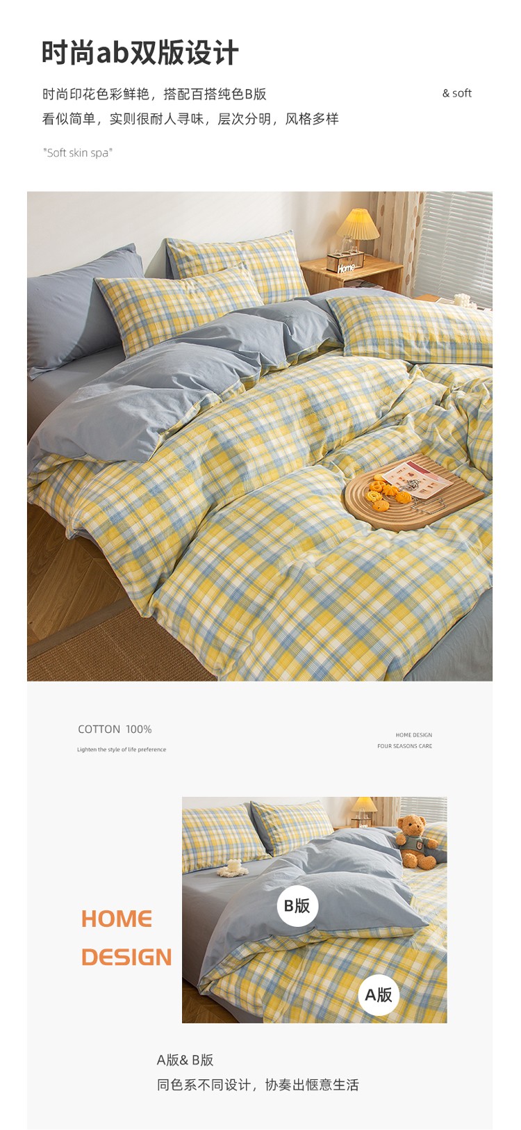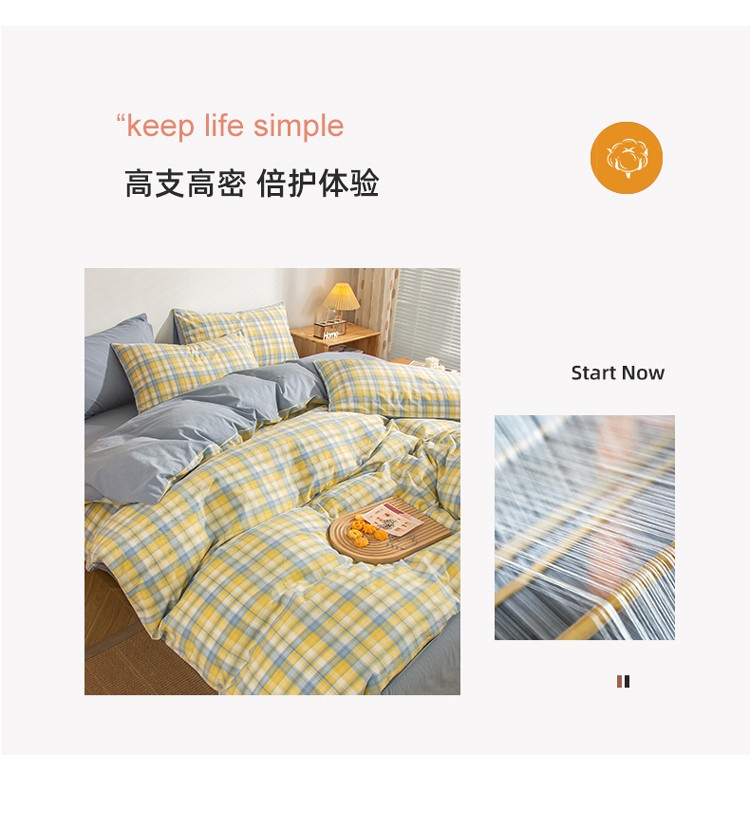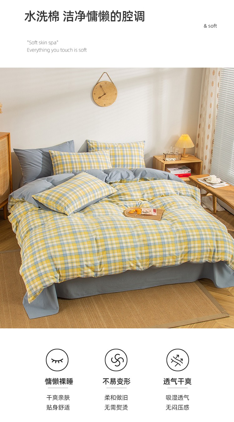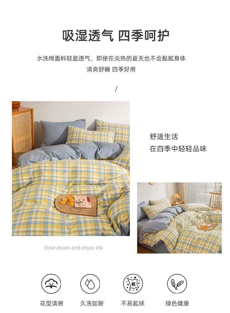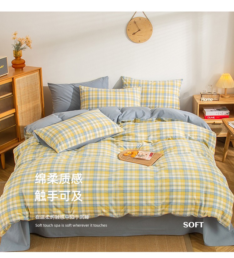 当前位置: 91家纺网 > 商品网购 > 床品套件 > 四件套 > 水洗棉四件套 > 柠萌家居 2022新款A类全棉色织水洗棉无印风格四件套 星空黄格