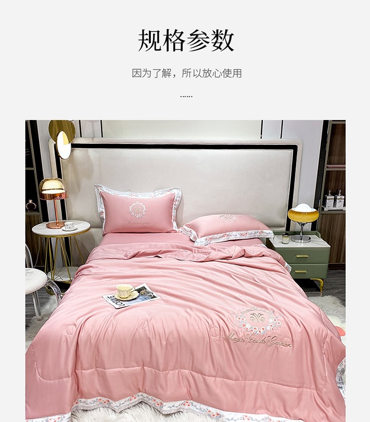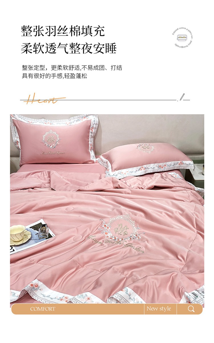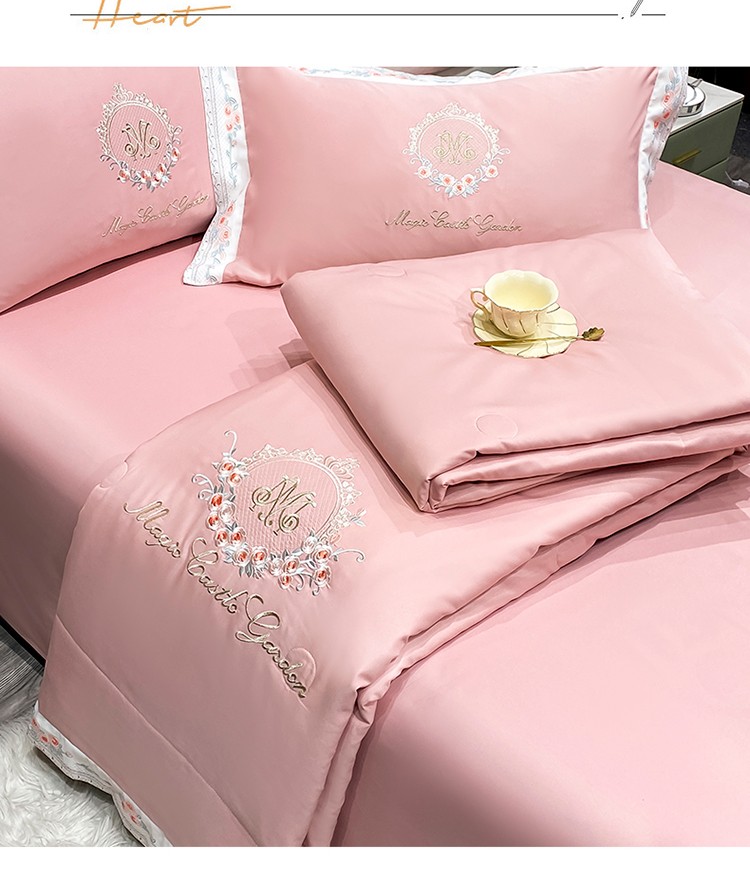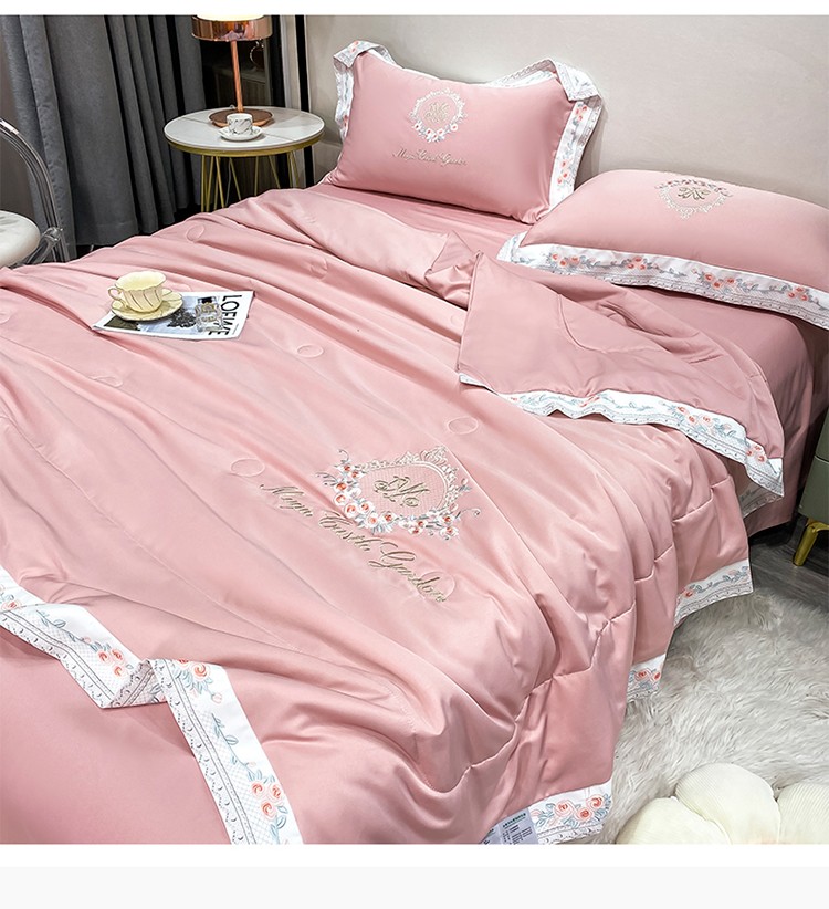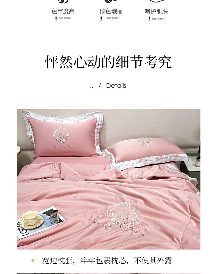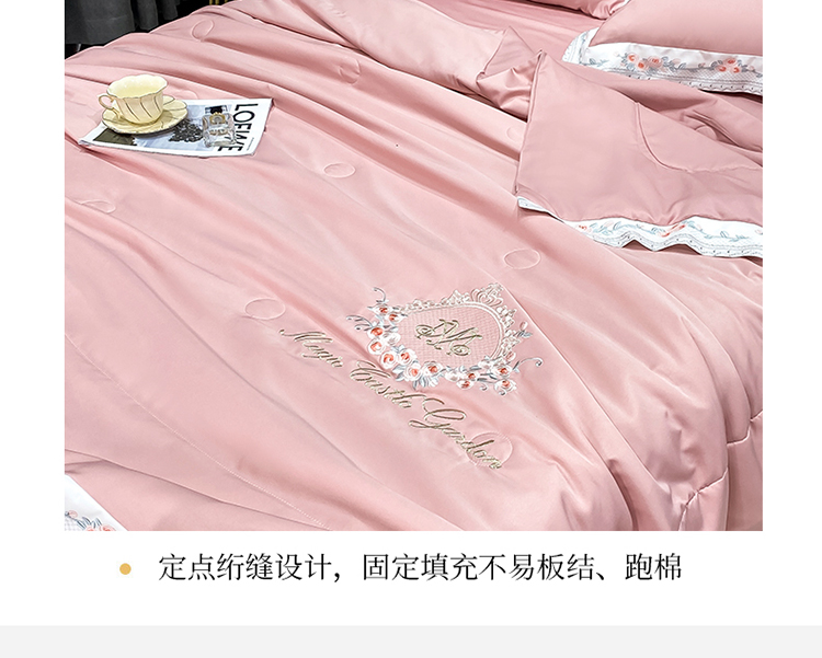 丽卡家纺 2023新款水洗天丝刺绣夏被四件套-梦露梦露-粉玉色