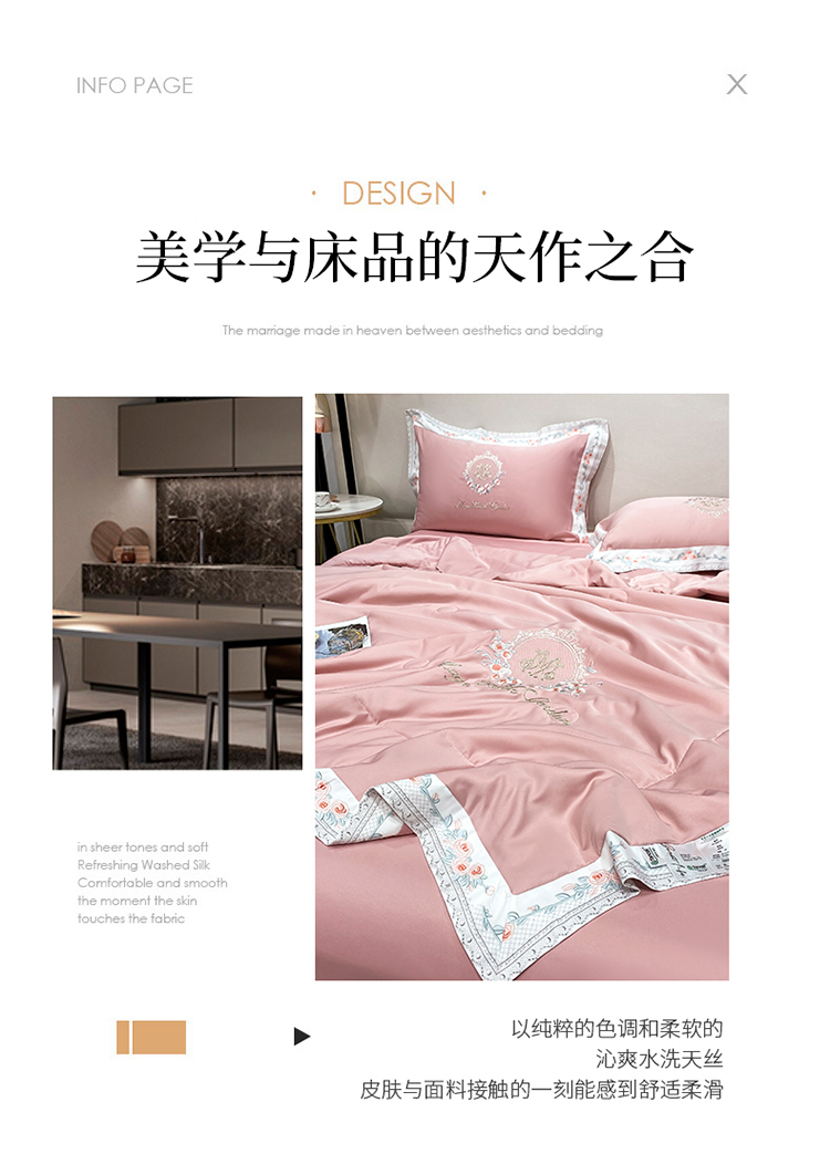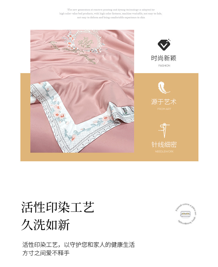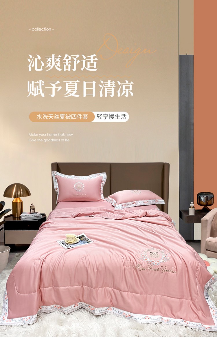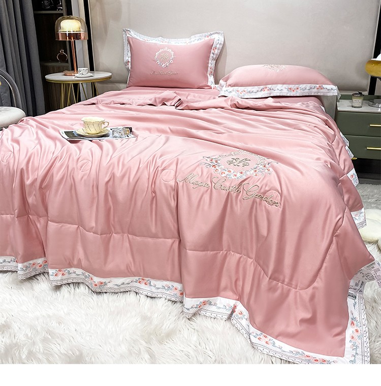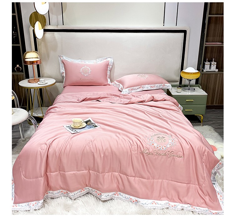 丽卡家纺 2023新款水洗天丝刺绣夏被四件套-梦露梦露-粉玉色