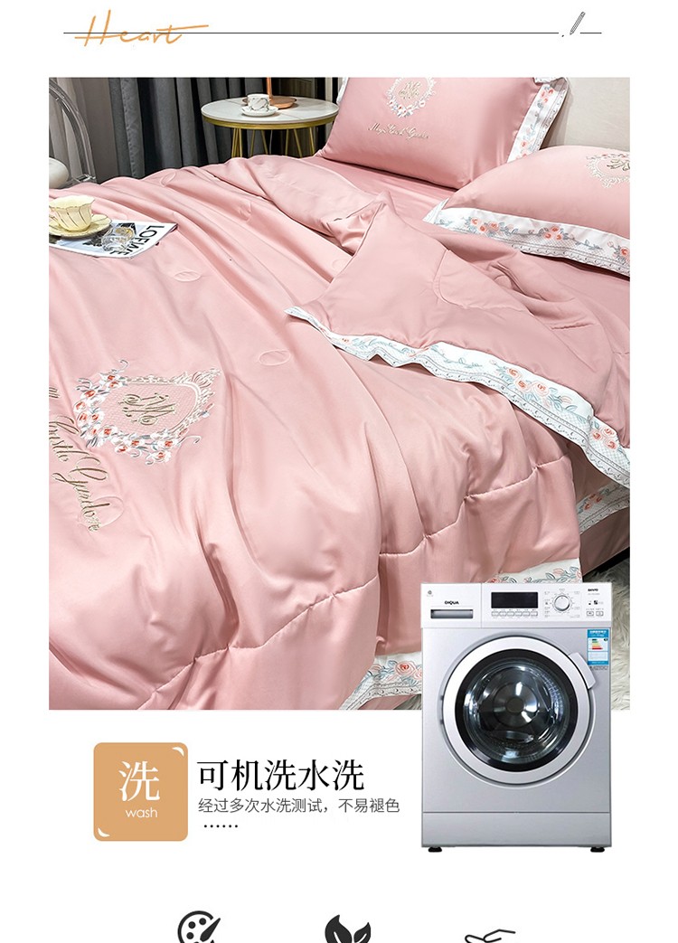 商品名称:丽卡家纺 2023新款水洗天丝刺绣夏被四件套-梦露梦露-粉玉色