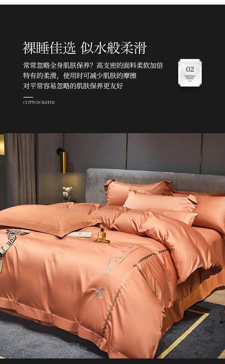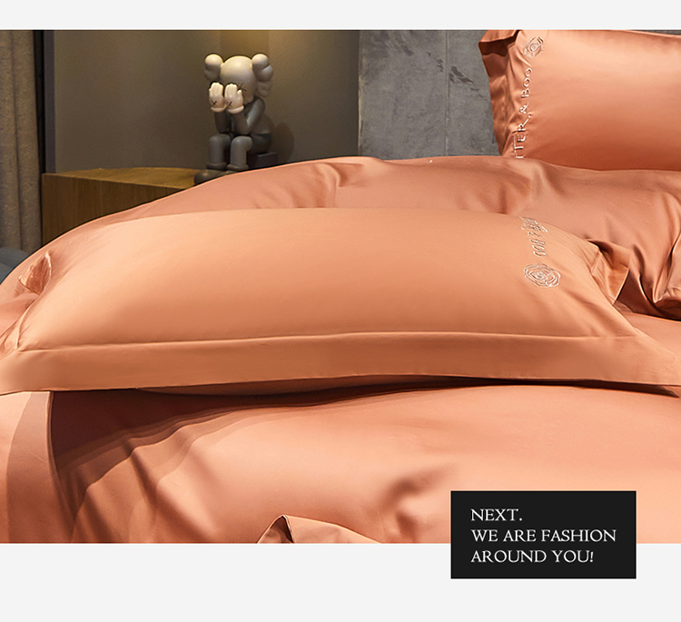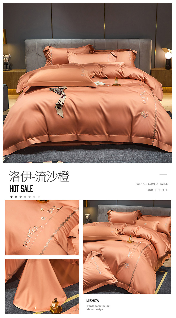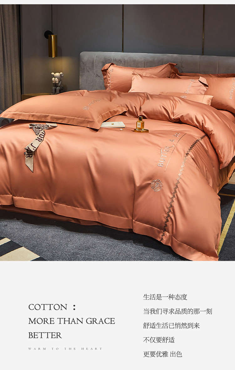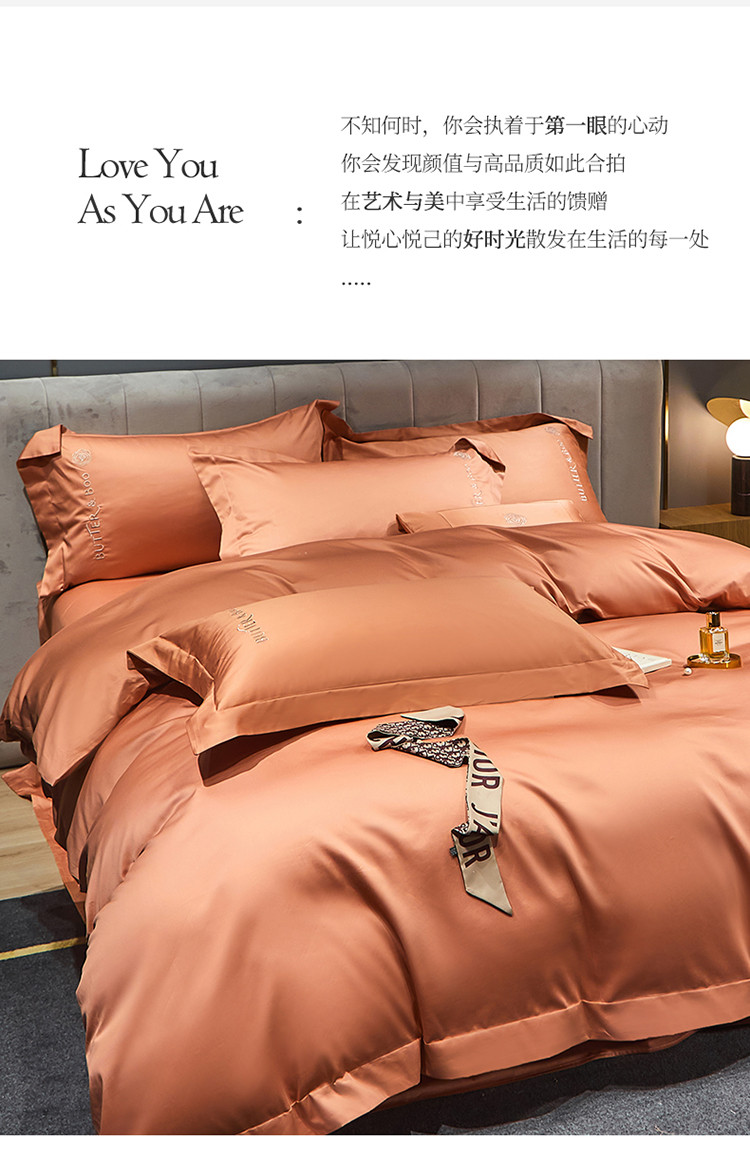 初拾 2022新款100支澳棉极简轻奢洛伊系列四件套-场景一 洛伊-流沙橙