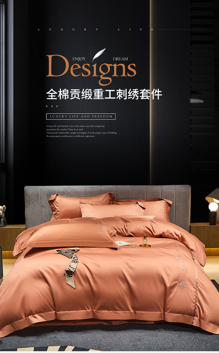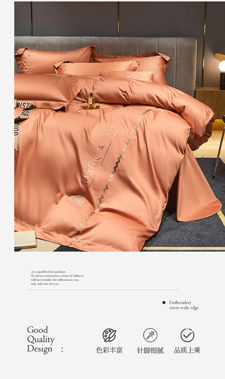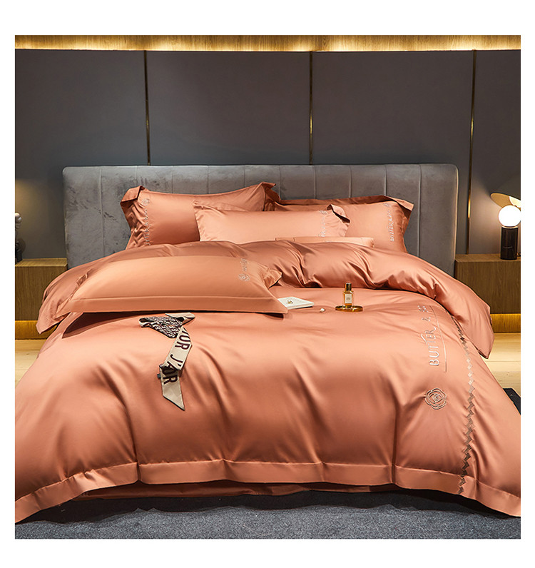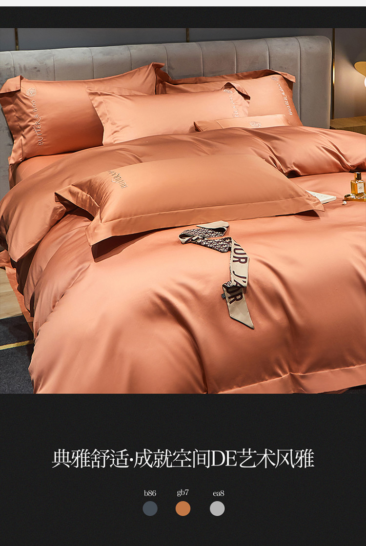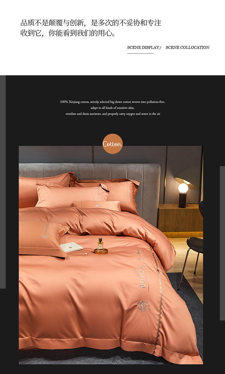 初拾 2022新款100支澳棉极简轻奢洛伊系列四件套-场景一 洛伊-流沙橙