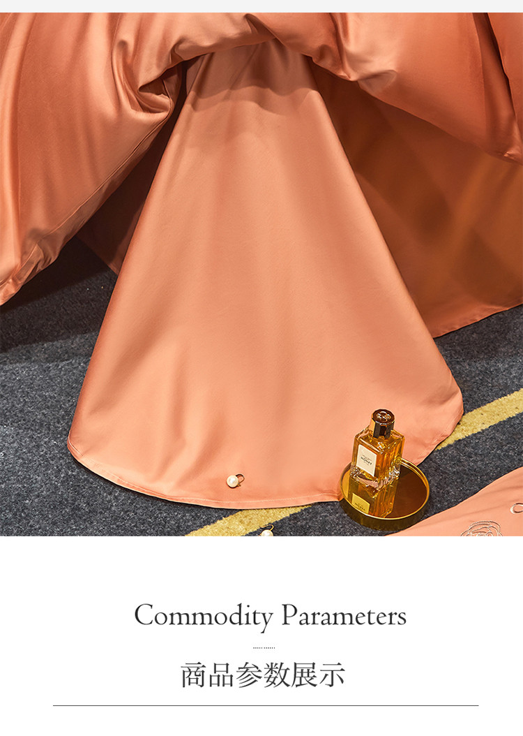 商品名称:初拾 2022新款100支澳棉极简轻奢洛伊系列四件套-场景一 洛伊-流沙橙