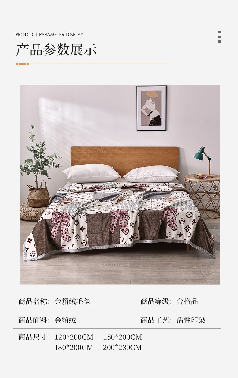 商品名称:爱她美家纺 2022新款300g金貂绒毛毯 蝴蝶结