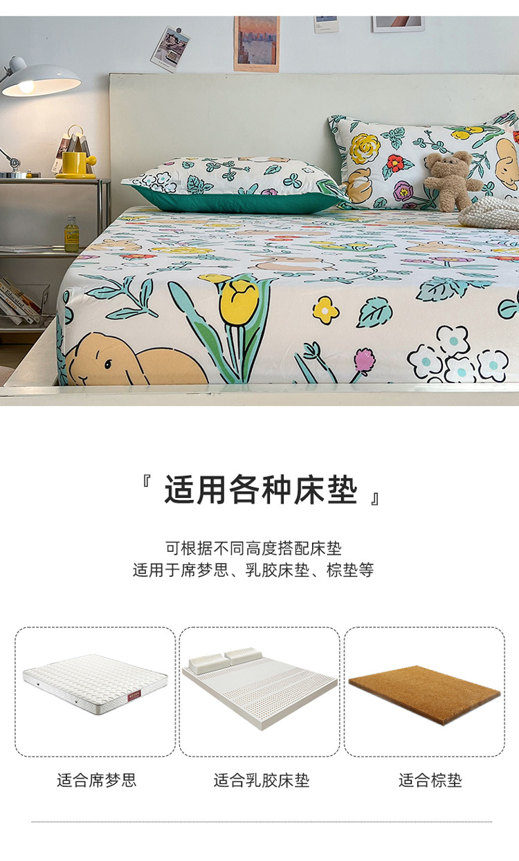 宏源家纺 2022新款亲肤棉芦荟棉单床笠 菲菲兔