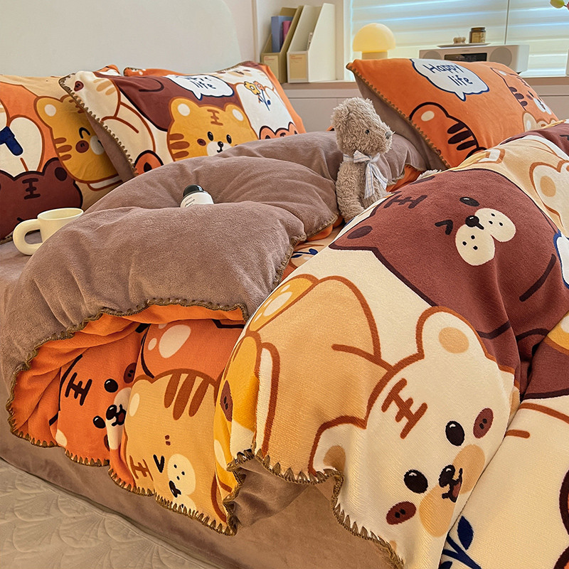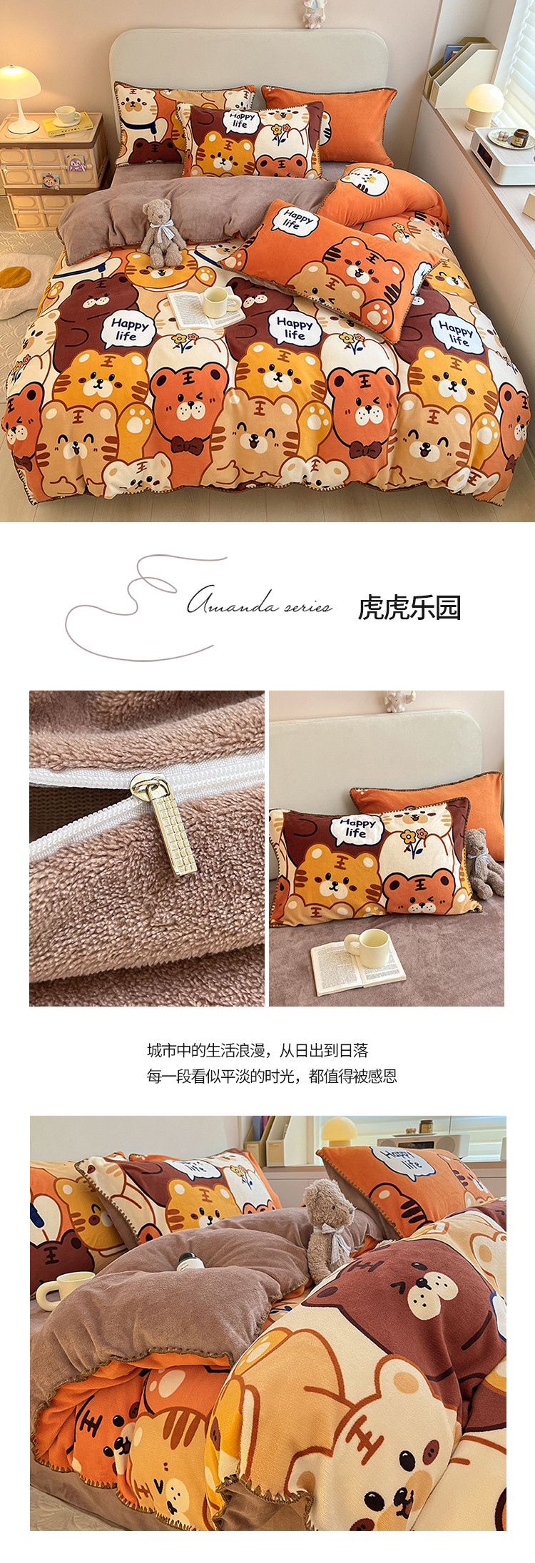 当前位置: 91家纺网 > 商品网购 > 床品套件 > 四件套 > 牛奶绒四件套 > 安哆啦 新款贝壳边工艺牛奶绒珊瑚绒四件套单被套 虎虎乐园