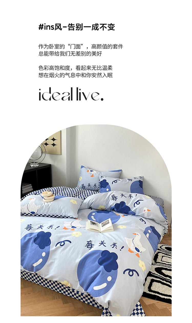 商品名称:雅居纺家纺 2022新款13070全棉印花四件套 莓关系