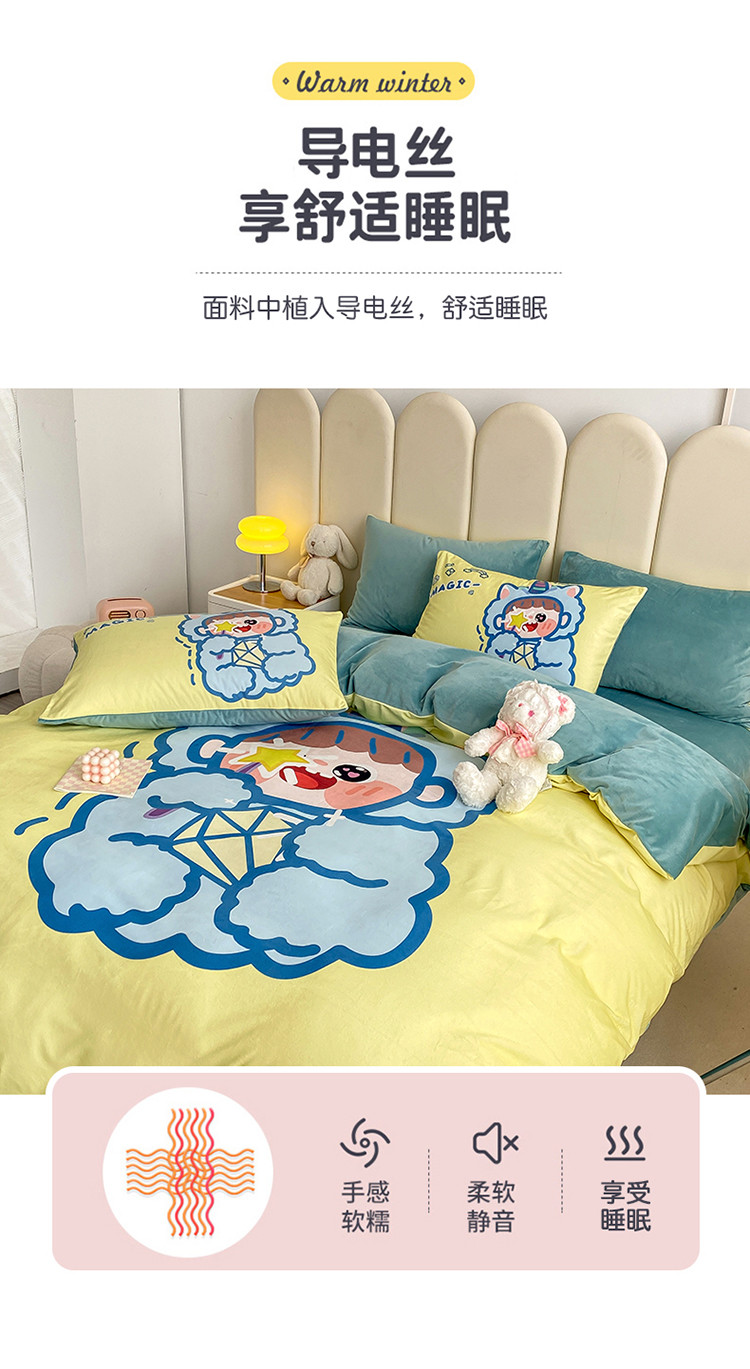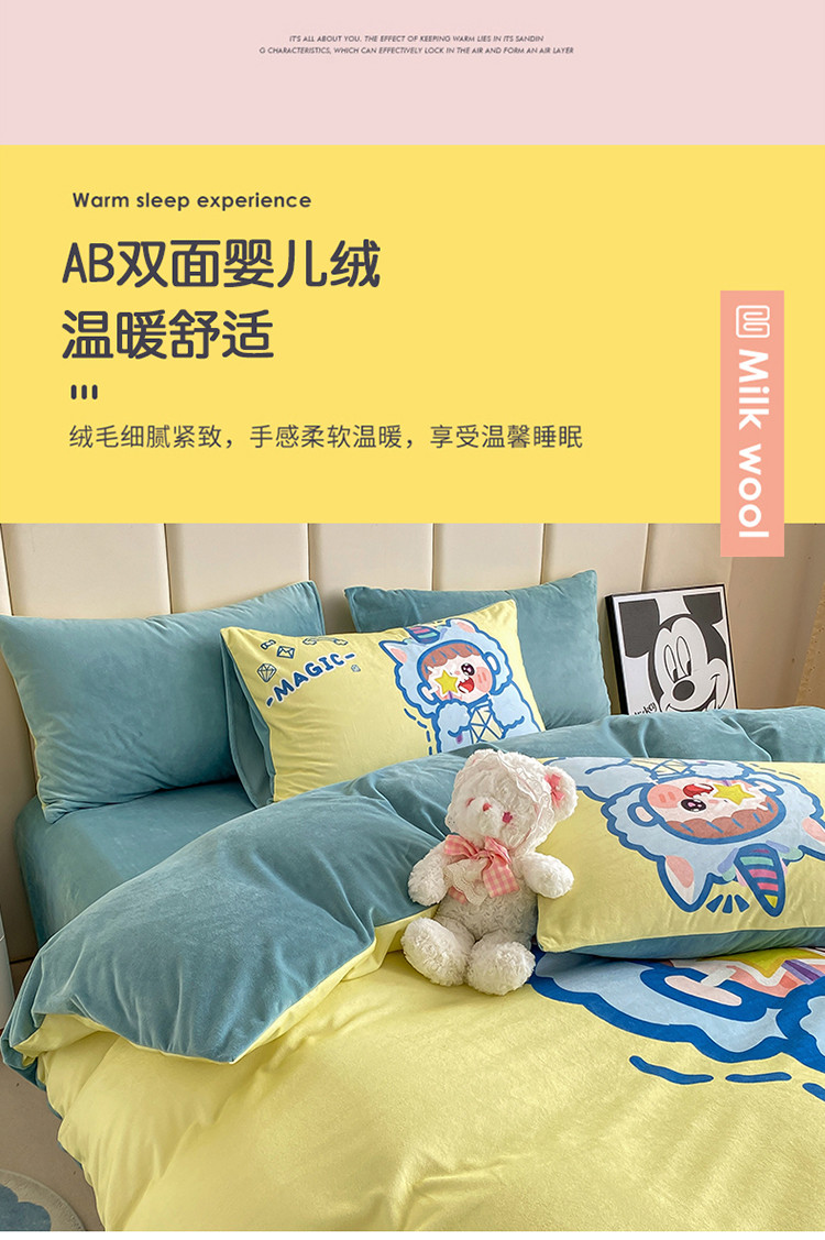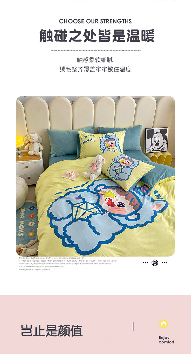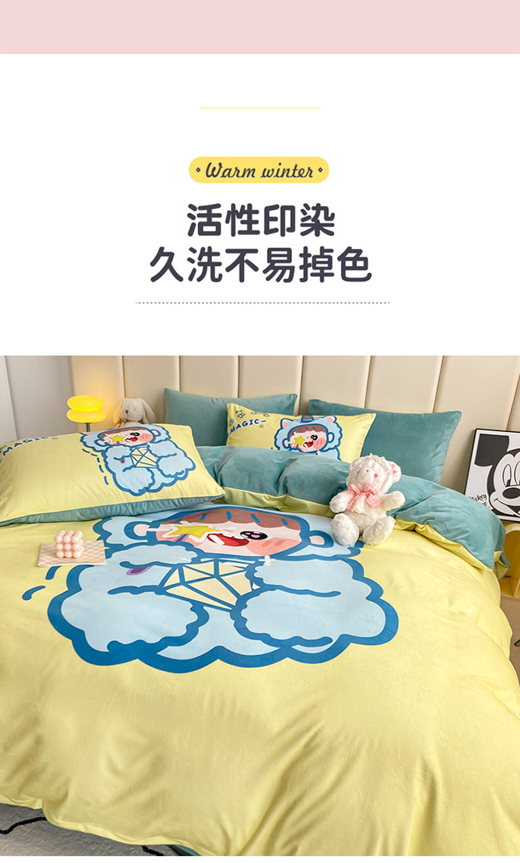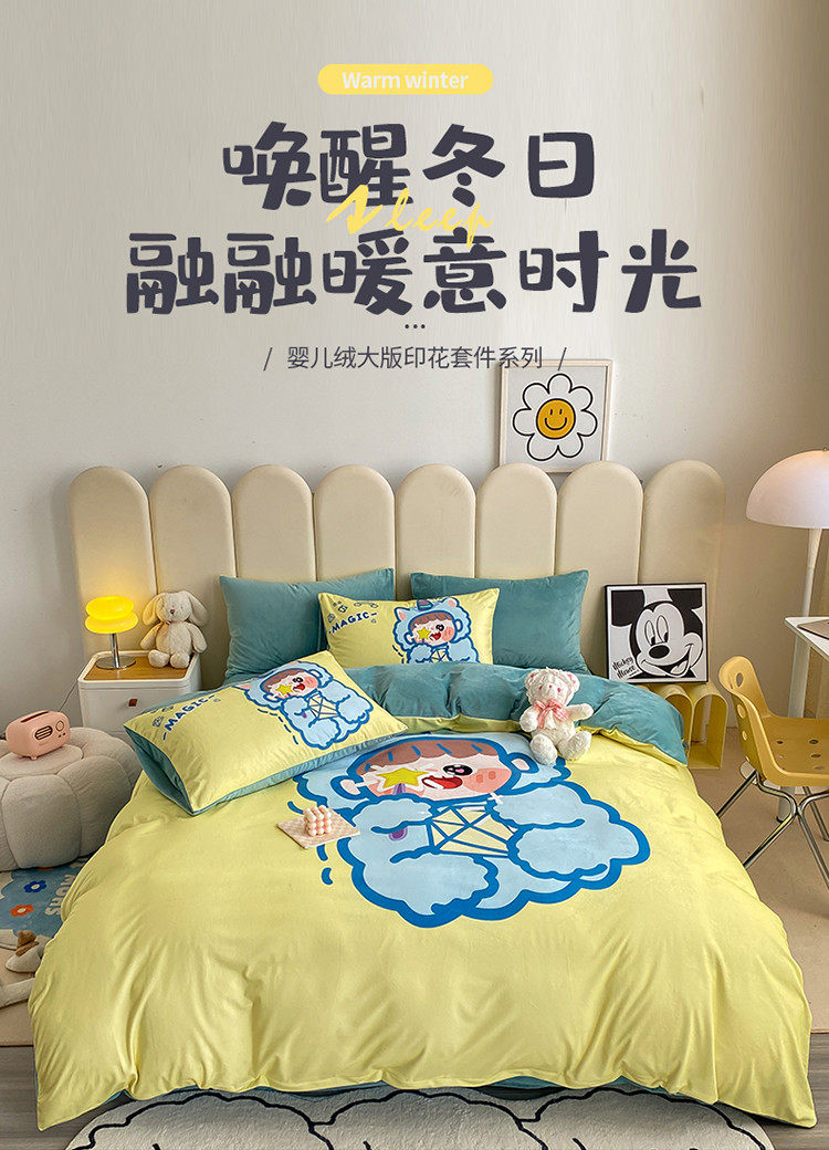 当前位置: 91家纺网 > 商品网购 > 床品套件 > 四件套 > 宝宝绒四件套 > 博雅 2022新款婴儿绒大版印花系列四件套 暖宝宝-黄