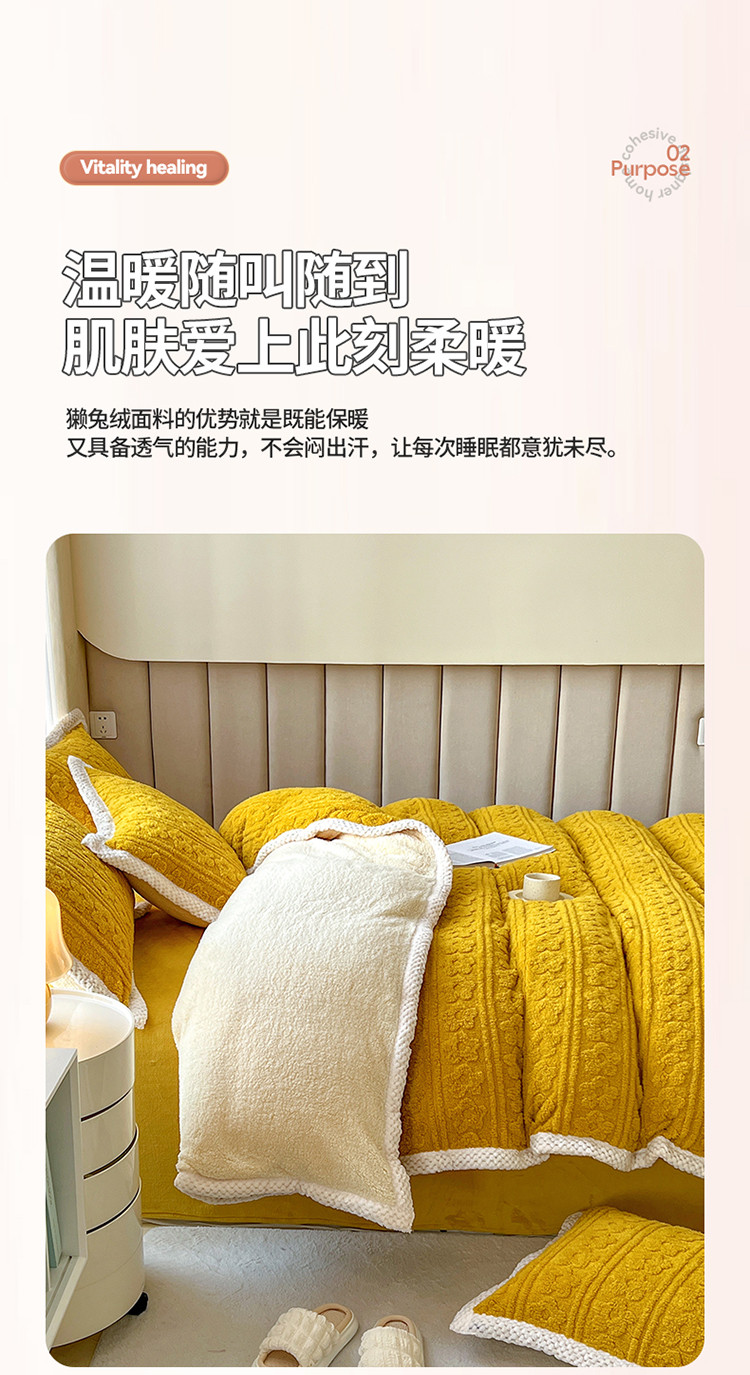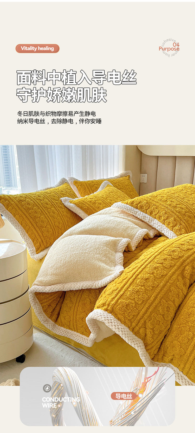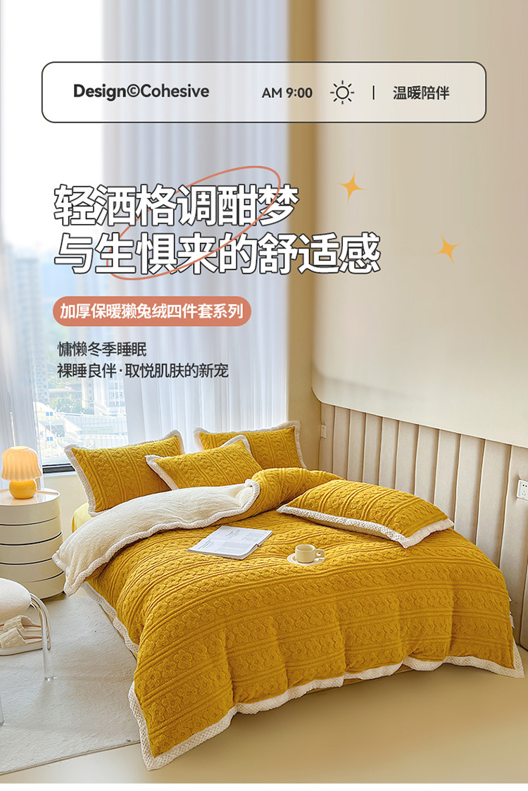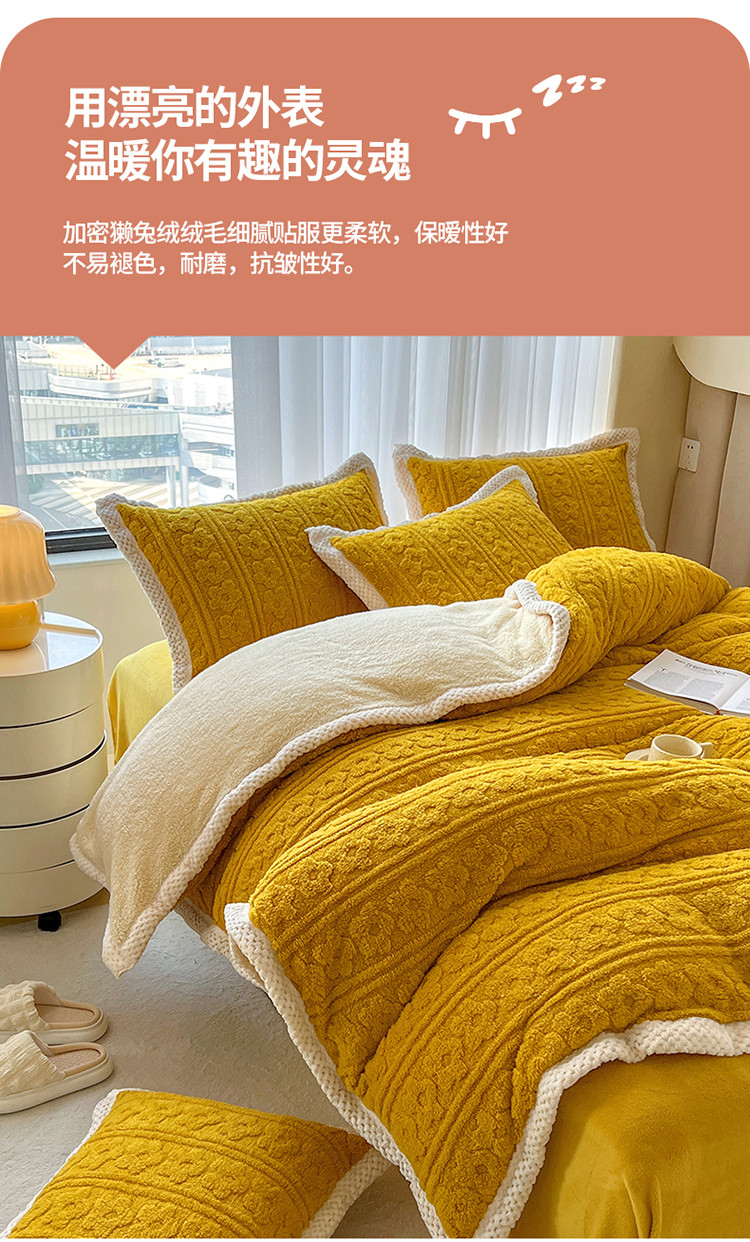 商品名称:摩妮卡2025新款加厚獭兔绒四件套 琥珀黄