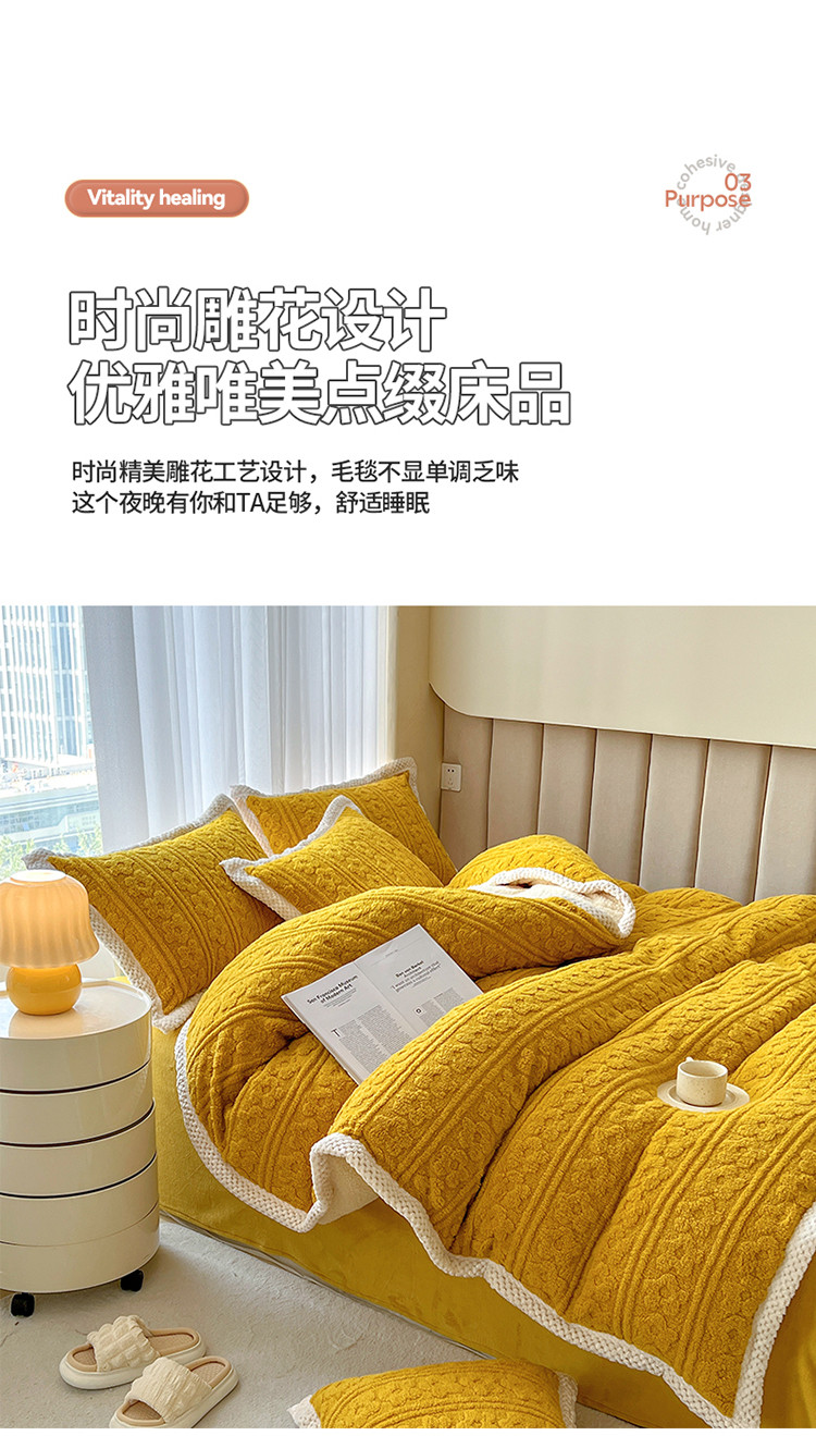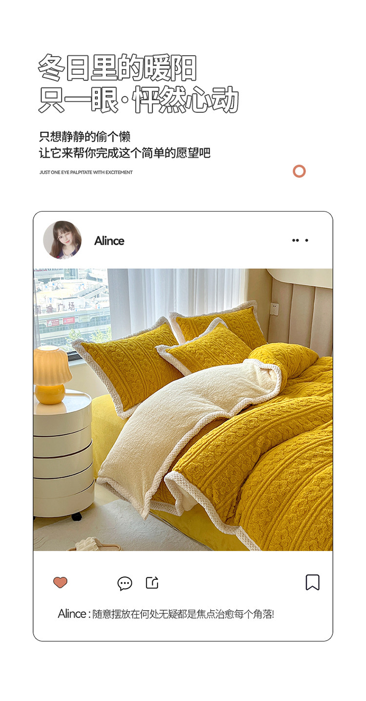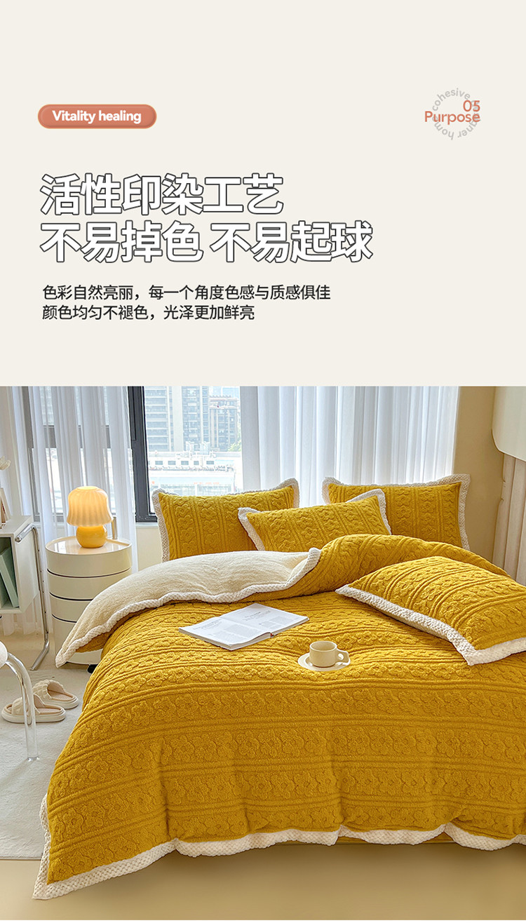 商品名称:摩妮卡2025新款加厚獭兔绒四件套 琥珀黄