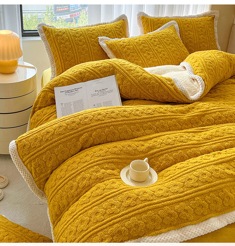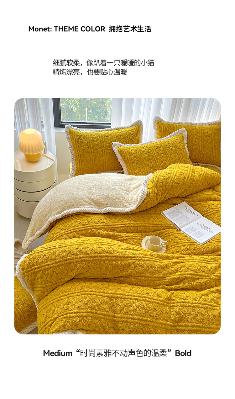 摩妮卡2025新款加厚獭兔绒四件套 琥珀黄