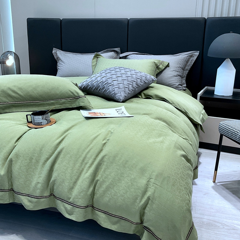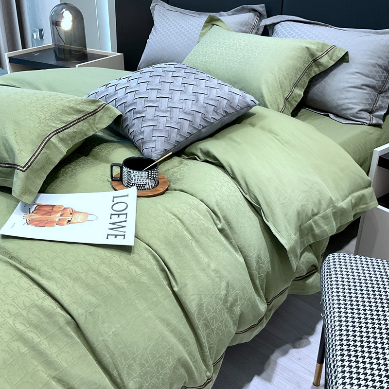 橘滋 2022新款100支水洗提花全棉四件套 卡迪-绿