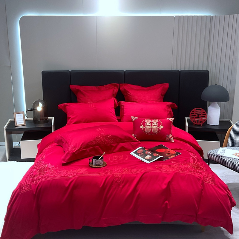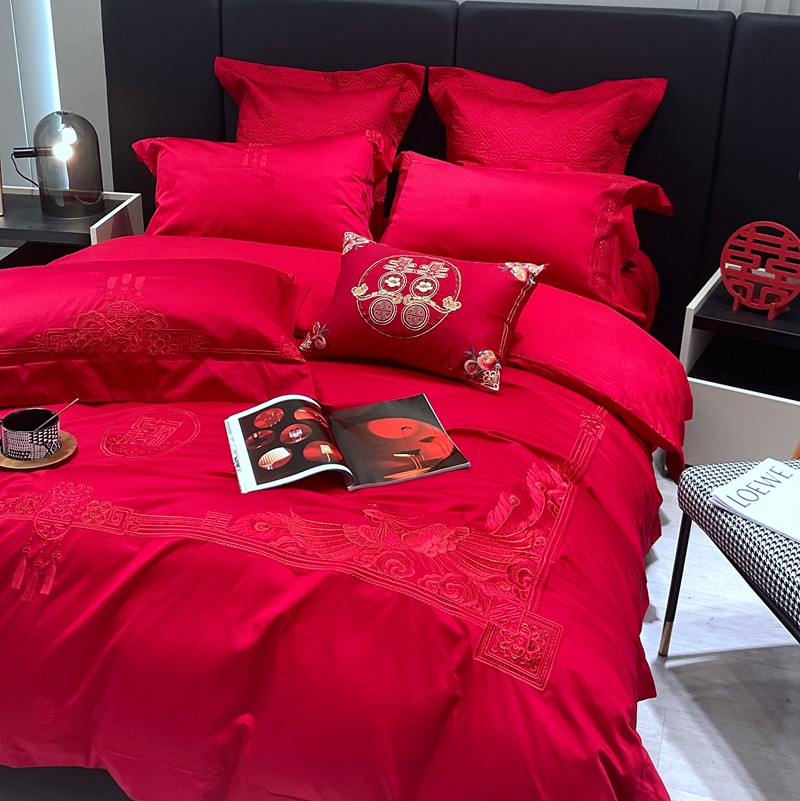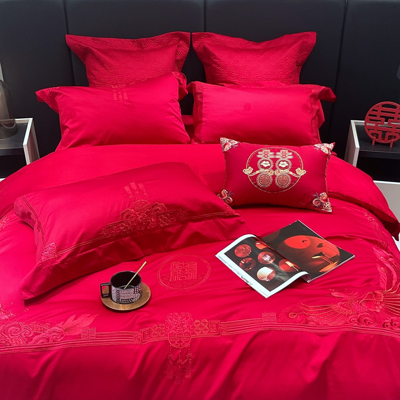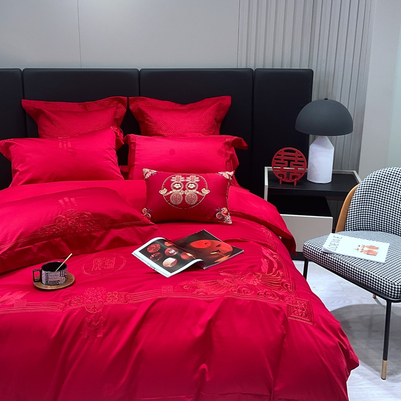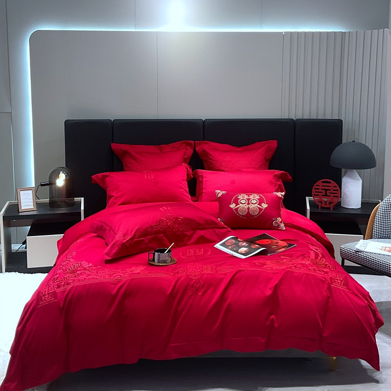 商品名称:橘滋 2022秋冬高端全棉婚庆新品大红重工刺绣四件套含情脉脉 含情脉脉(红)
