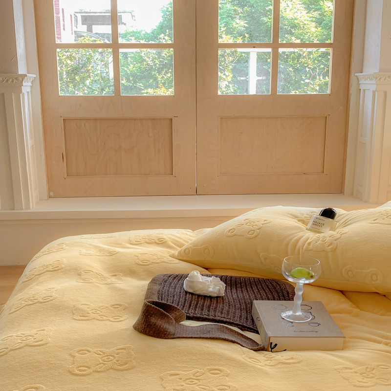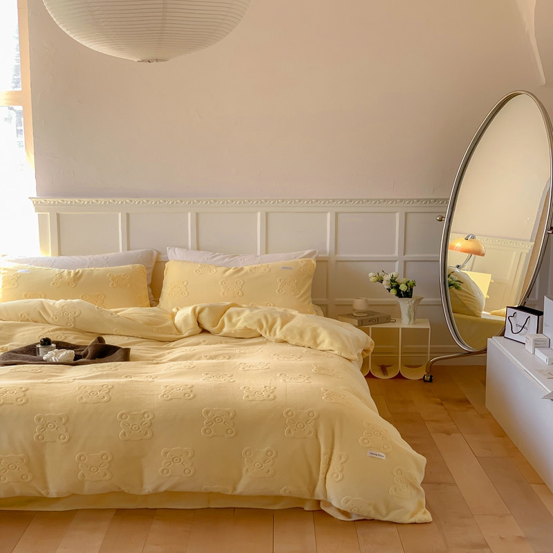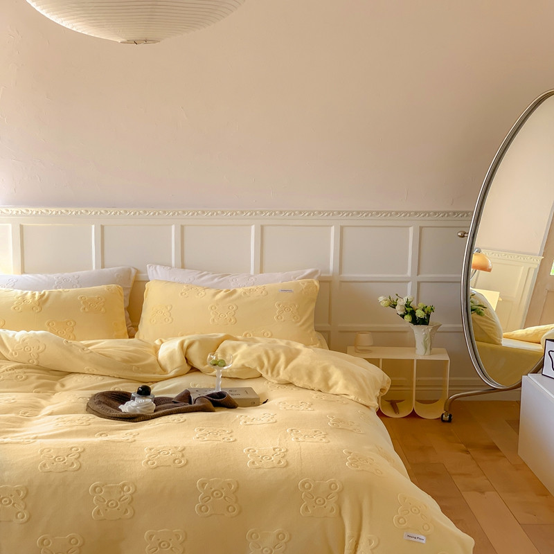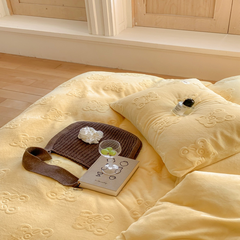 洋铭区 2022新款牛奶绒四件套小熊软糖 小熊软糖奶黄色