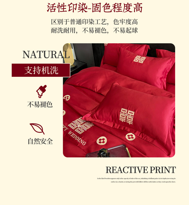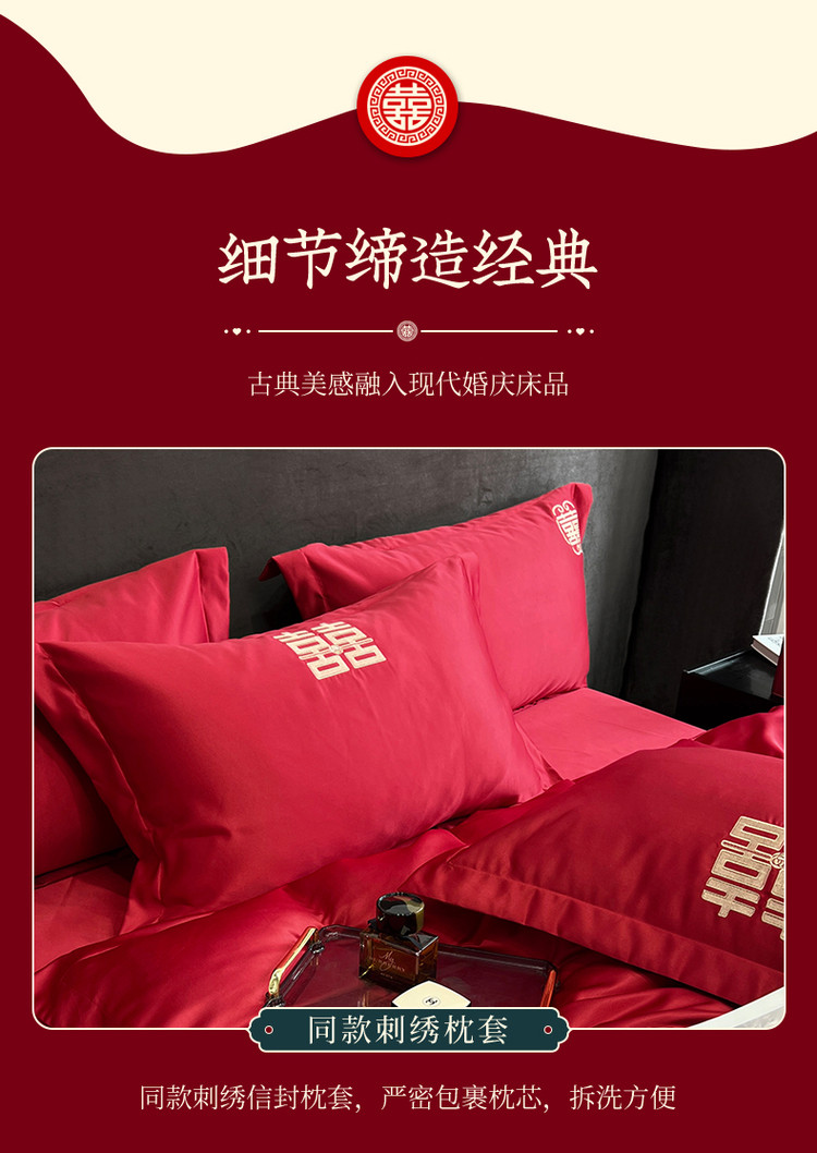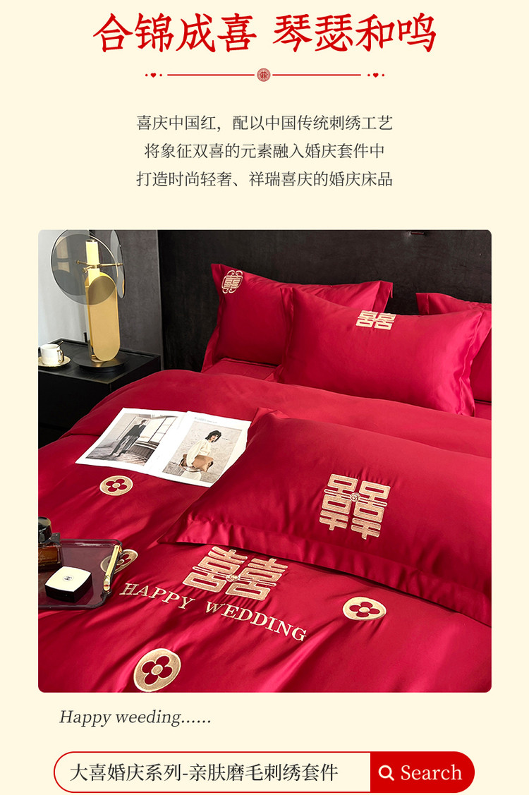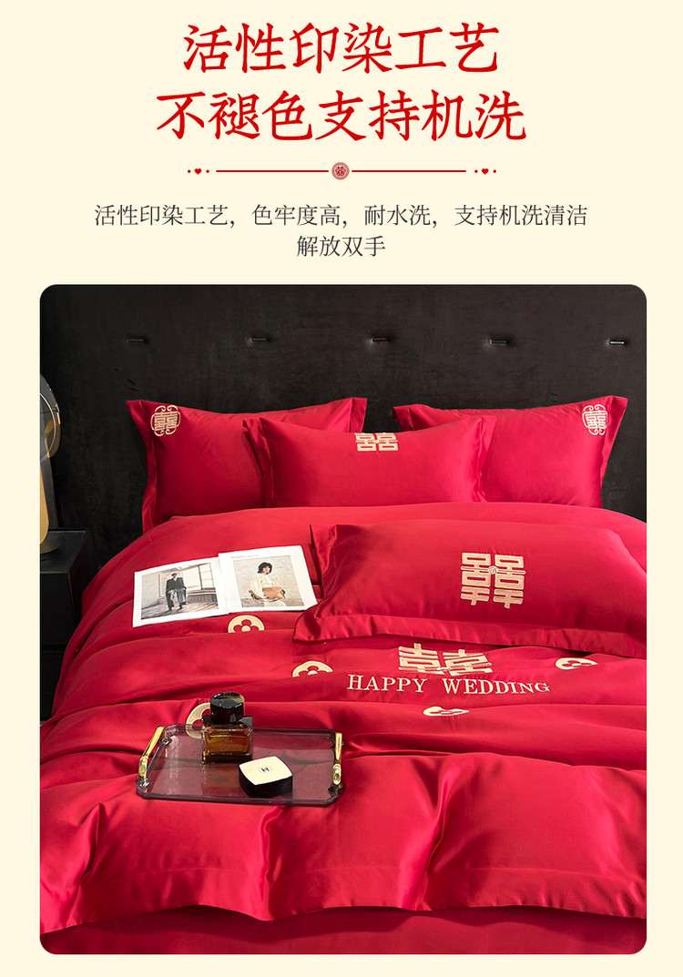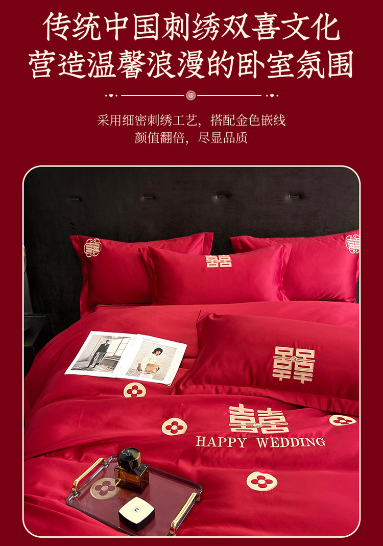 商品名称:优悦 2022新款超柔亲肤磨毛刺绣款婚庆四件套 浪漫约定