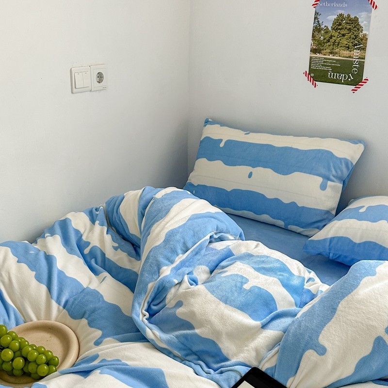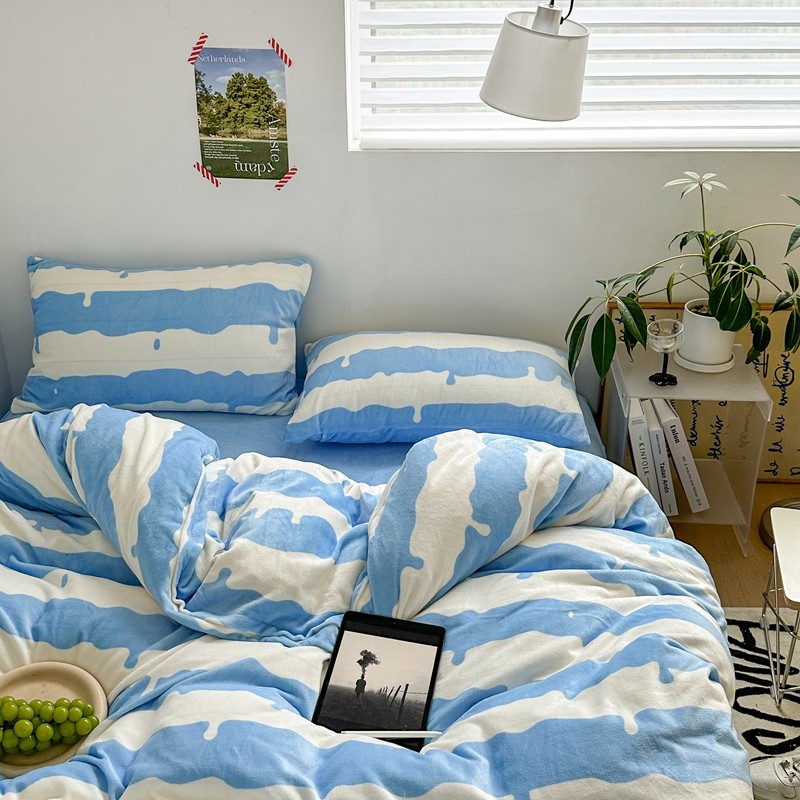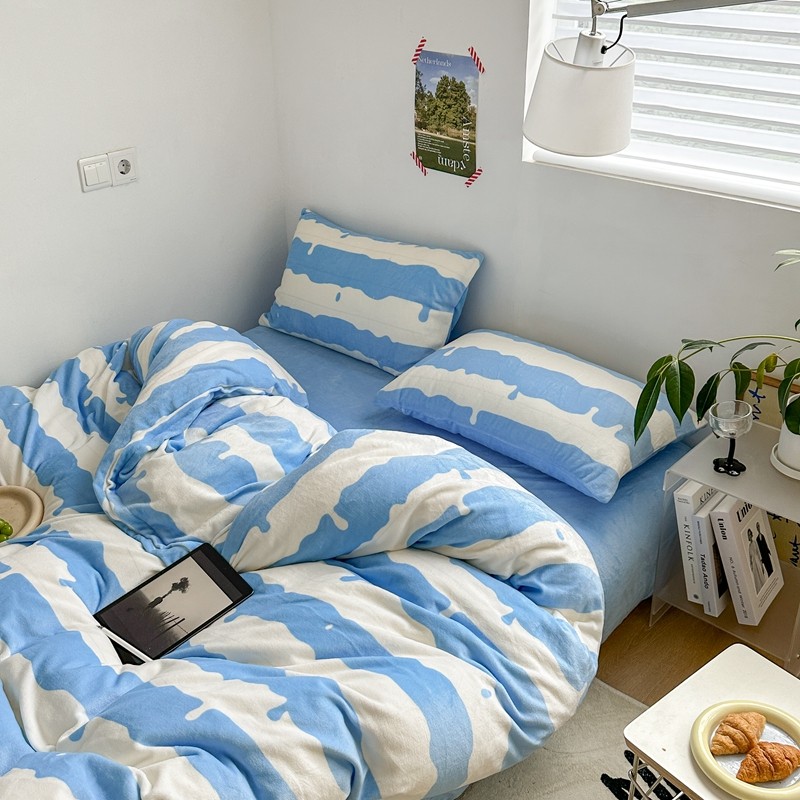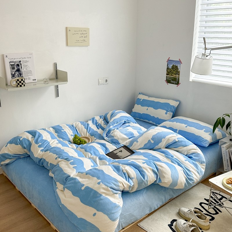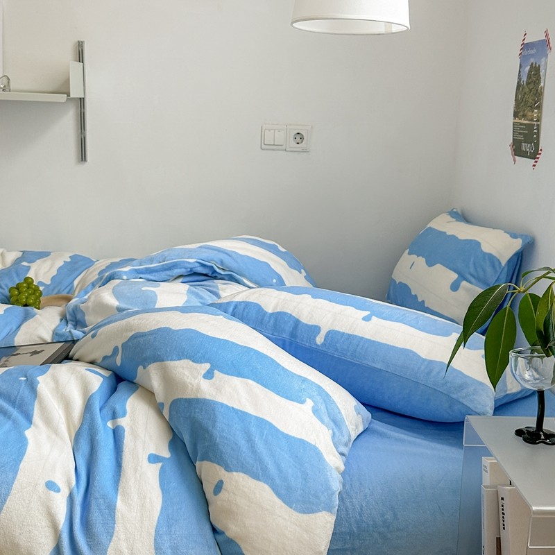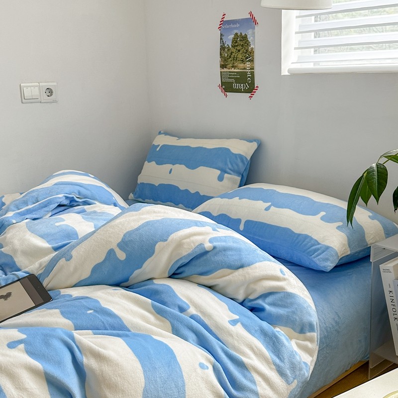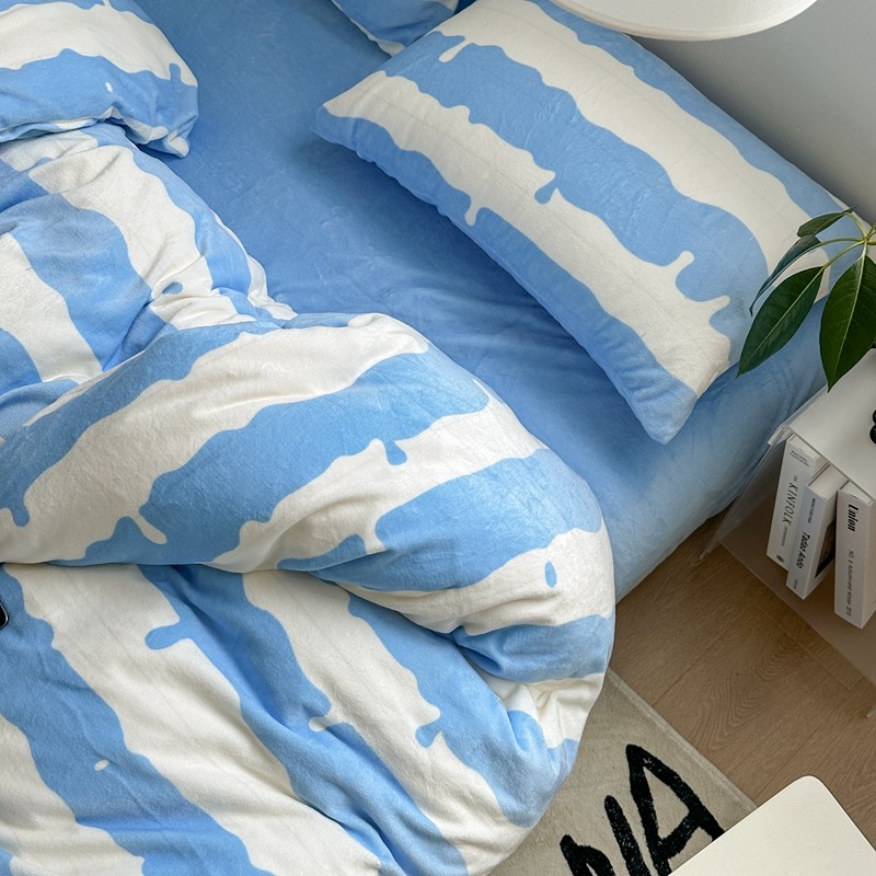 商品名称:柚子 2022新款现代空间牛奶绒四件套 融化-蓝