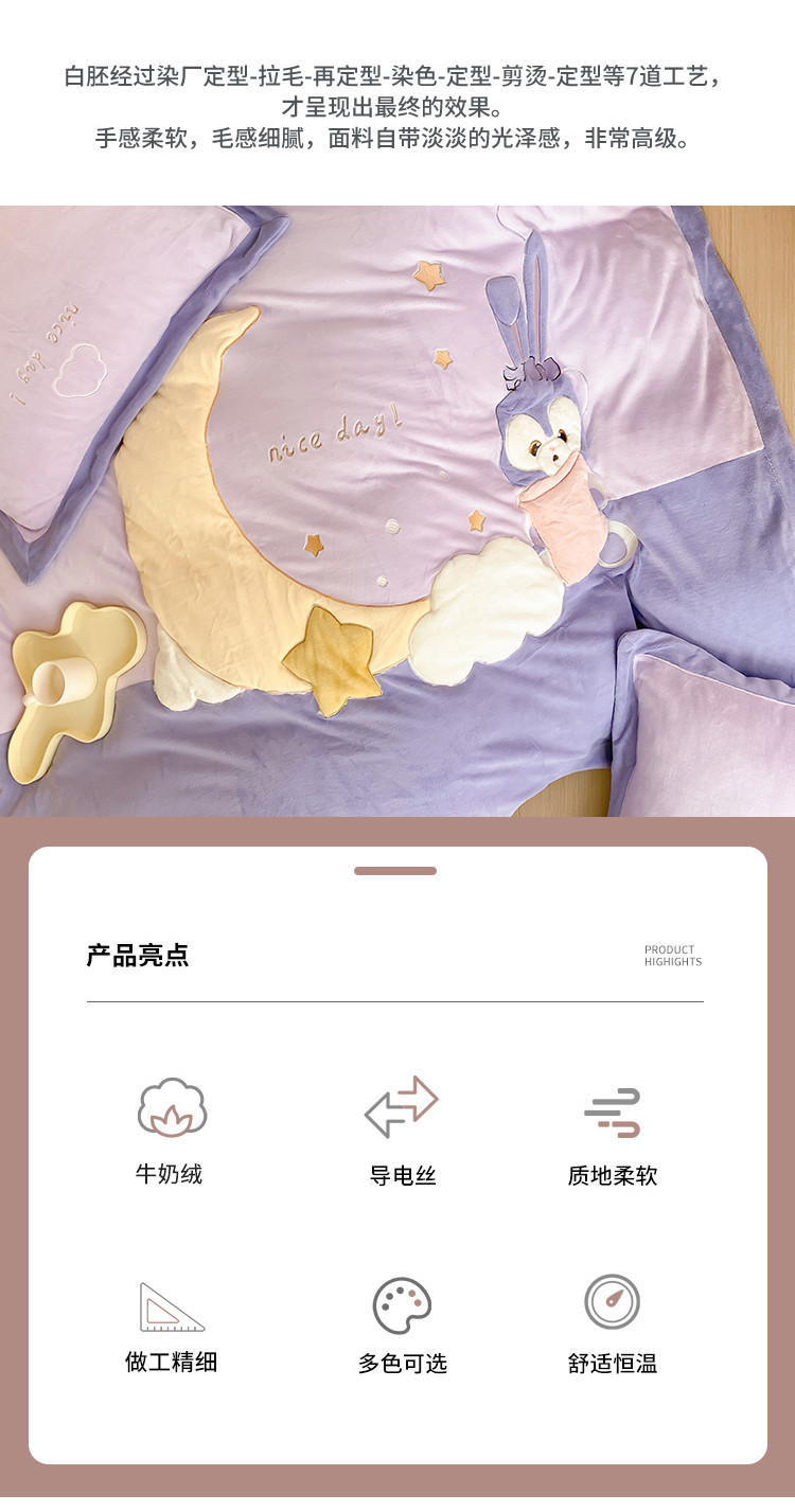 商品名称:(总)西西家居 2022新款全消光牛奶绒四件套-梦幻兔