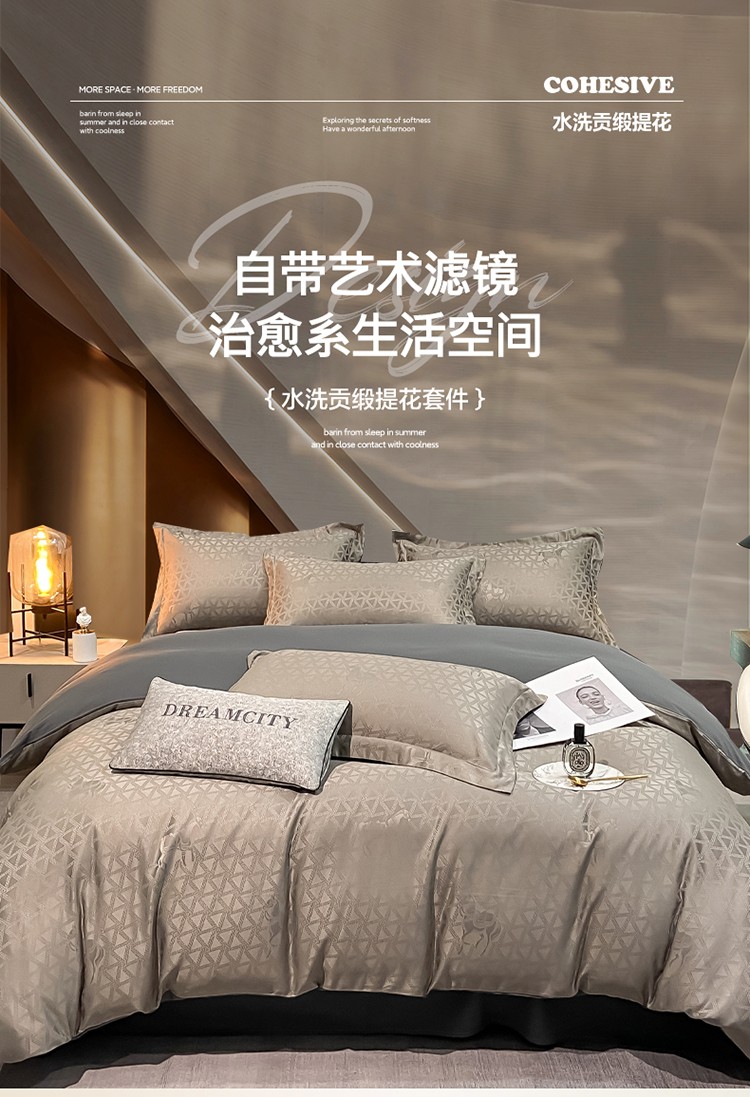 遇见家居生活馆 2023新款水洗贡缎提花四件套 柏林-深灰