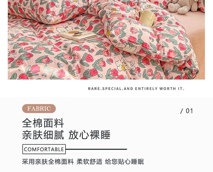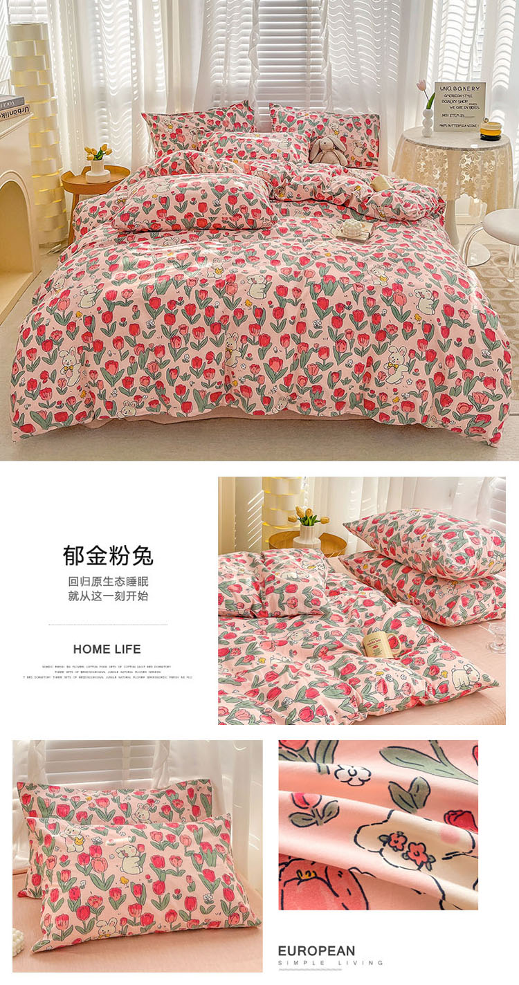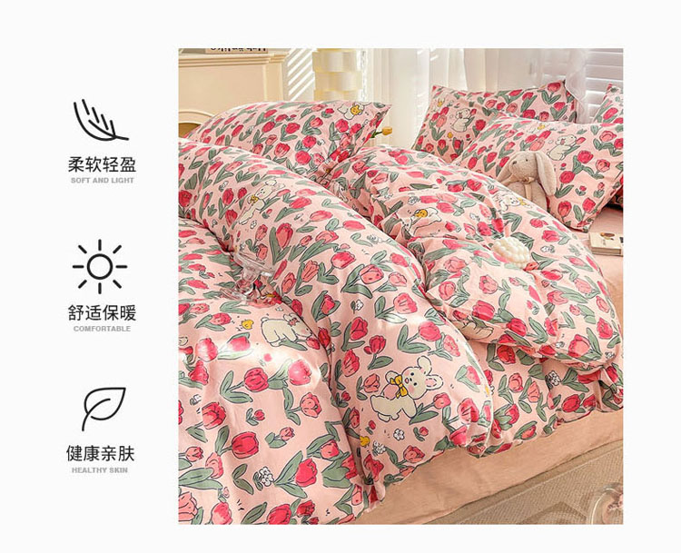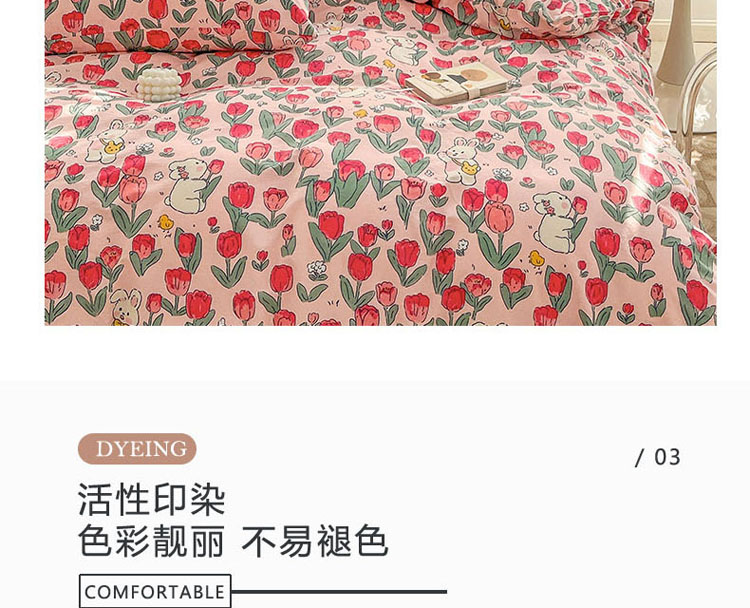 (总)梦家居 2023春季新品小清新系列全棉四件套,幸运兔,爱心兔,铃兰花兔,钱兔柿锦,熊兔乐园,奶咖小兔,西莉娅,魔法小兔,郁金粉兔,郁金紫兔,草莓兔,蜜桃兔,黛西,南瓜小兔,郁金花兔