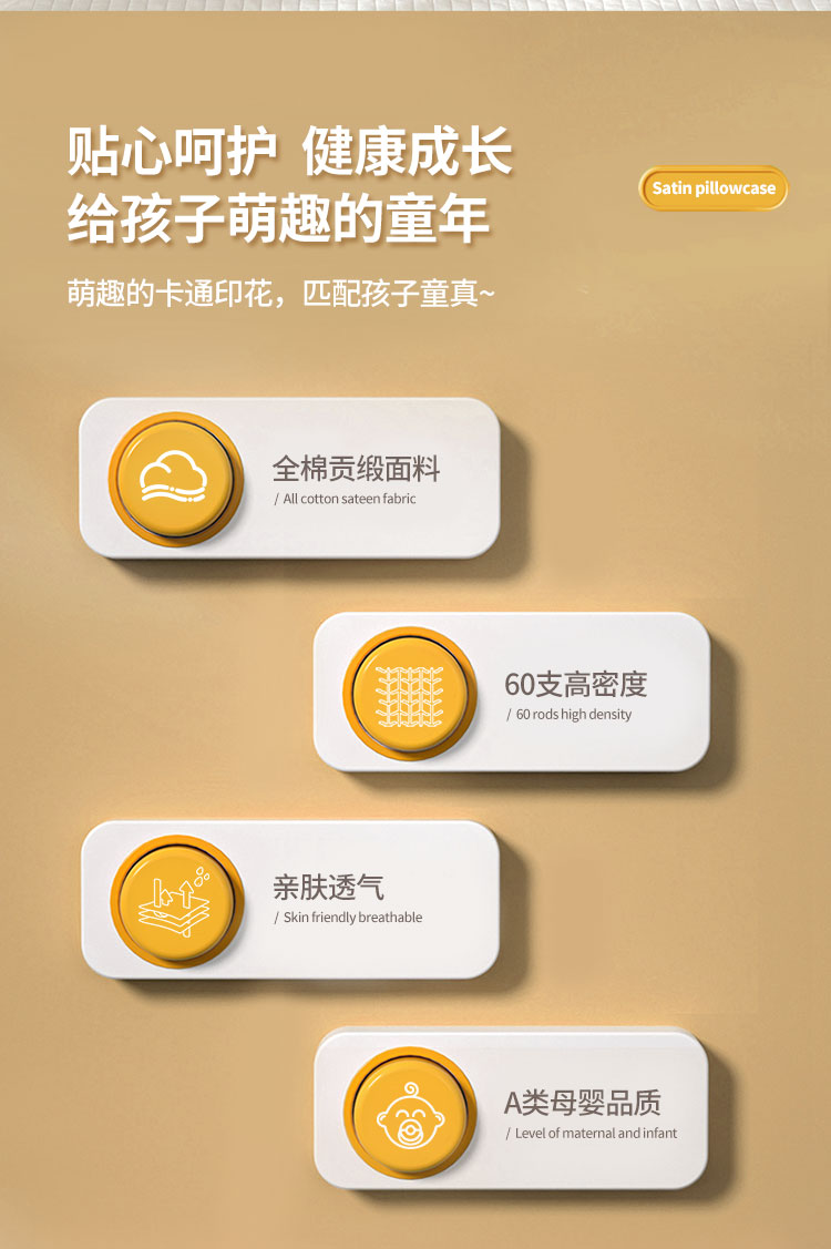 (总)良佐生活 2023新款A类60支全棉贡缎乳胶枕枕套儿童橡胶枕头套高低,口袋熊,恐龙宝宝,开心熊 粉,冰淇淋,恐龙乐园,花仙兔,贝塔 粉,挖掘车