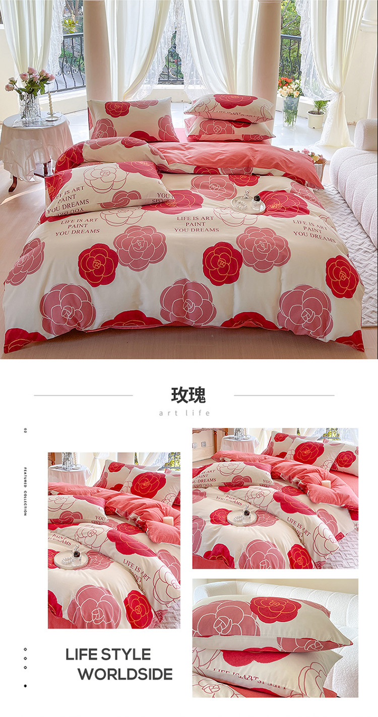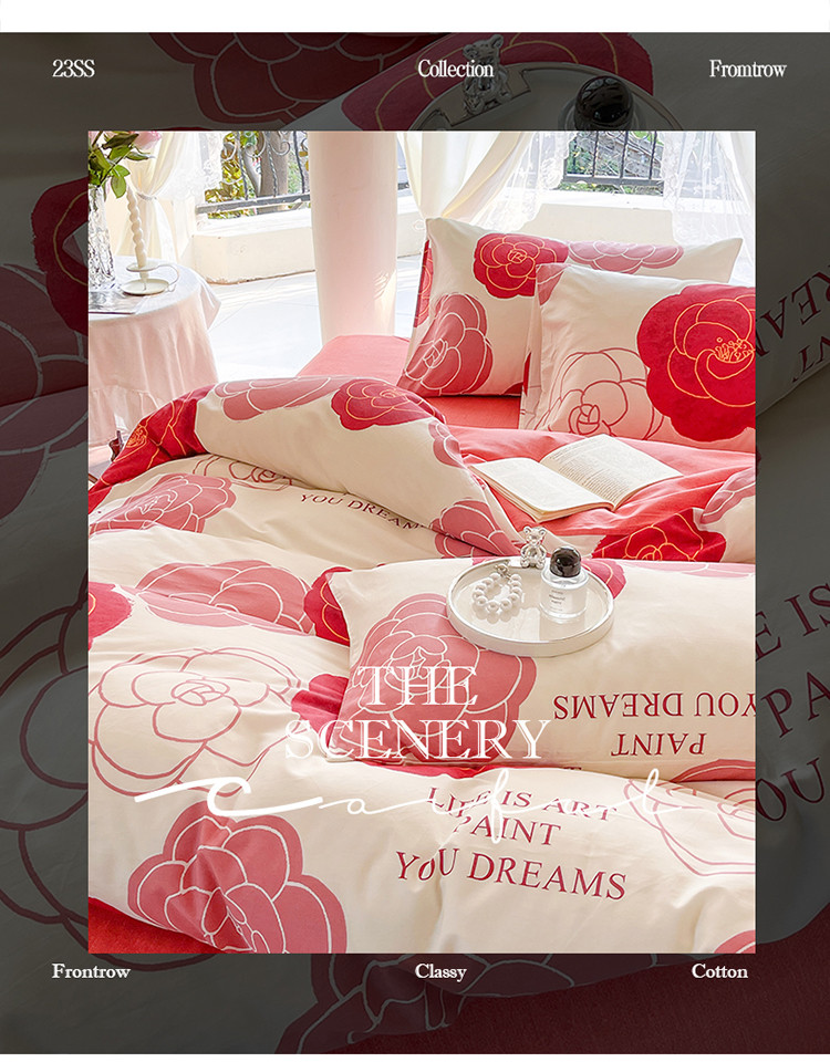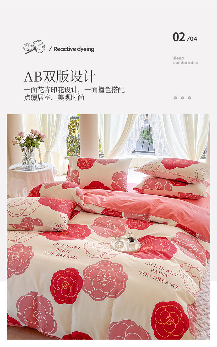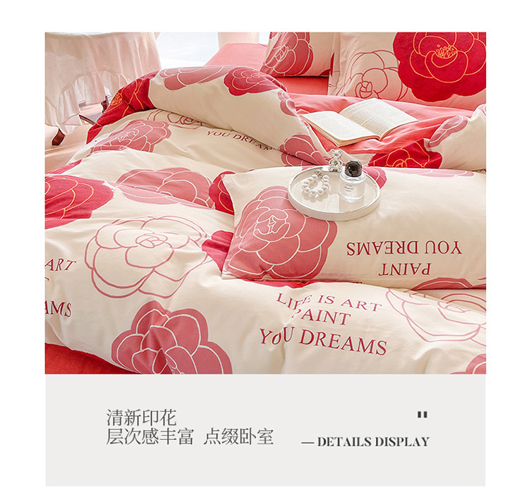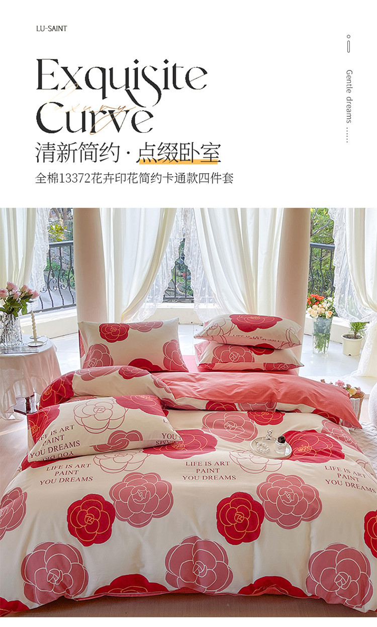 星巴k家纺2023新款全棉13372花卉印花简约卡通款多规格四件套玫瑰