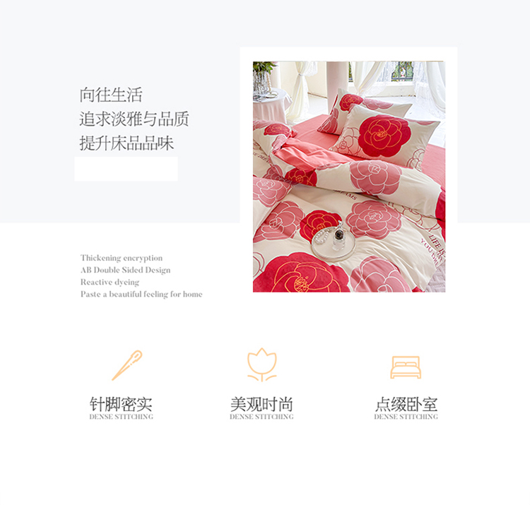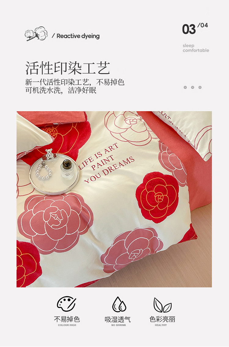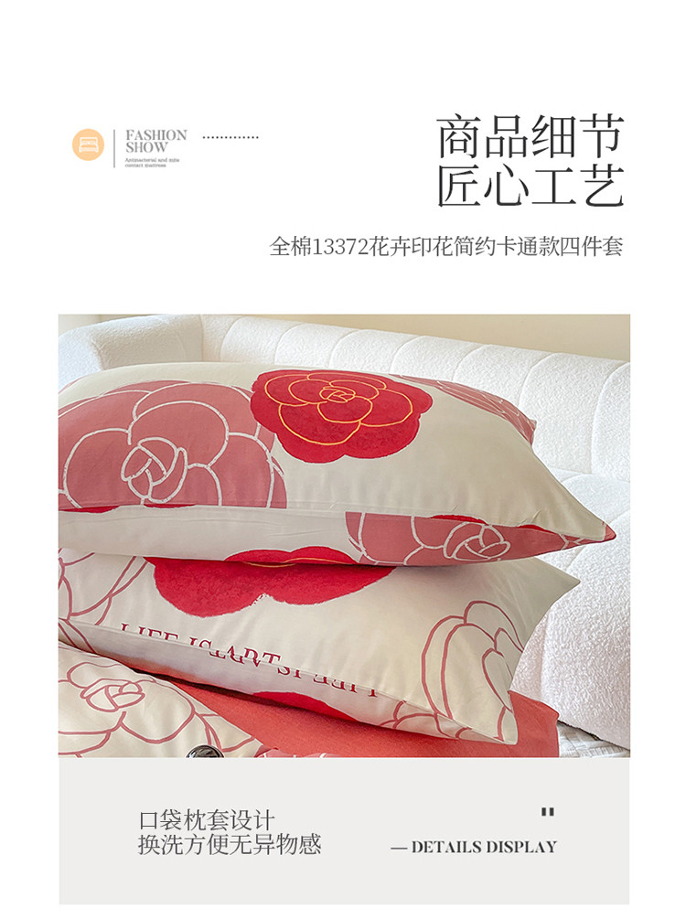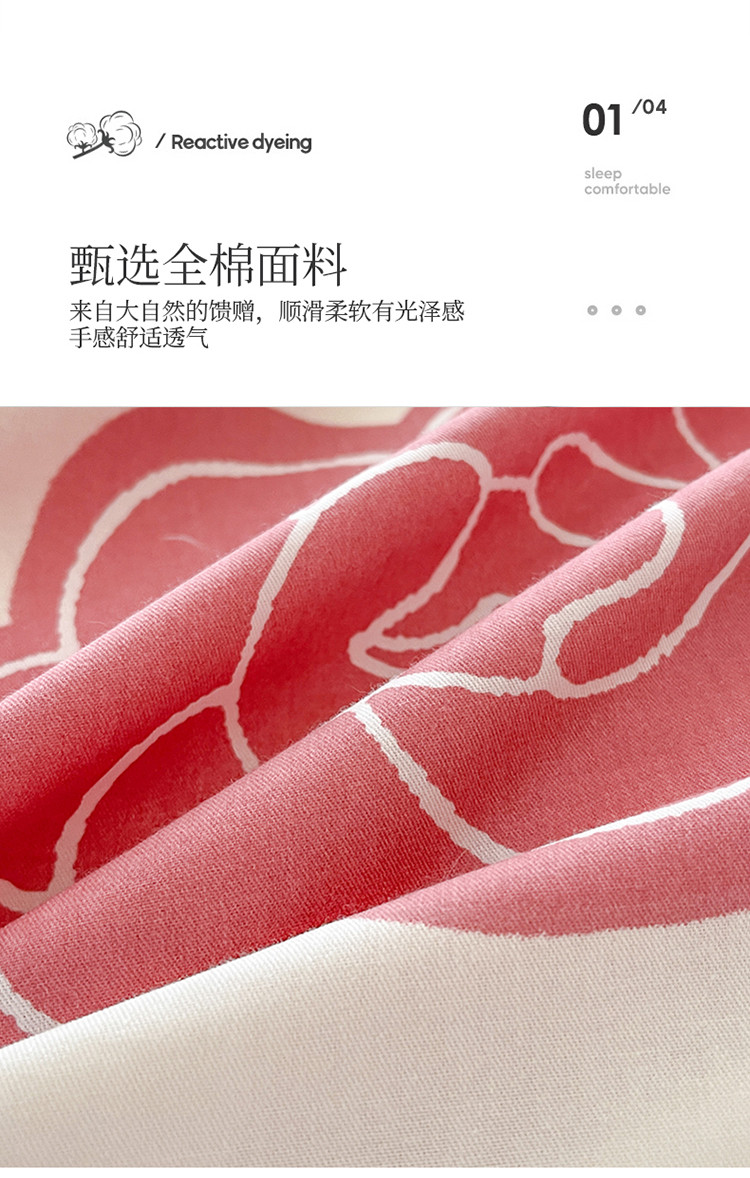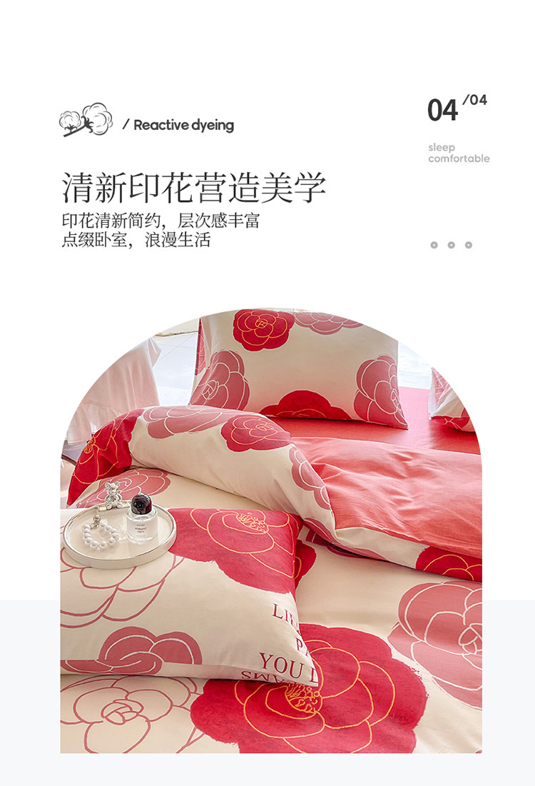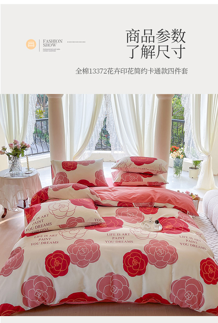 商品名称:星巴k家纺2023新款全棉13372花卉印花简约卡通款多规格四件套玫瑰