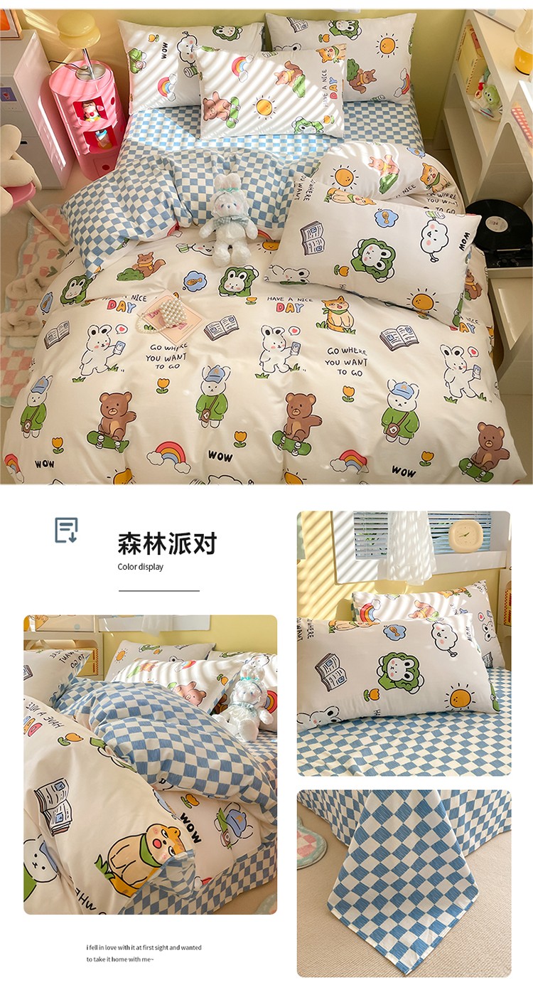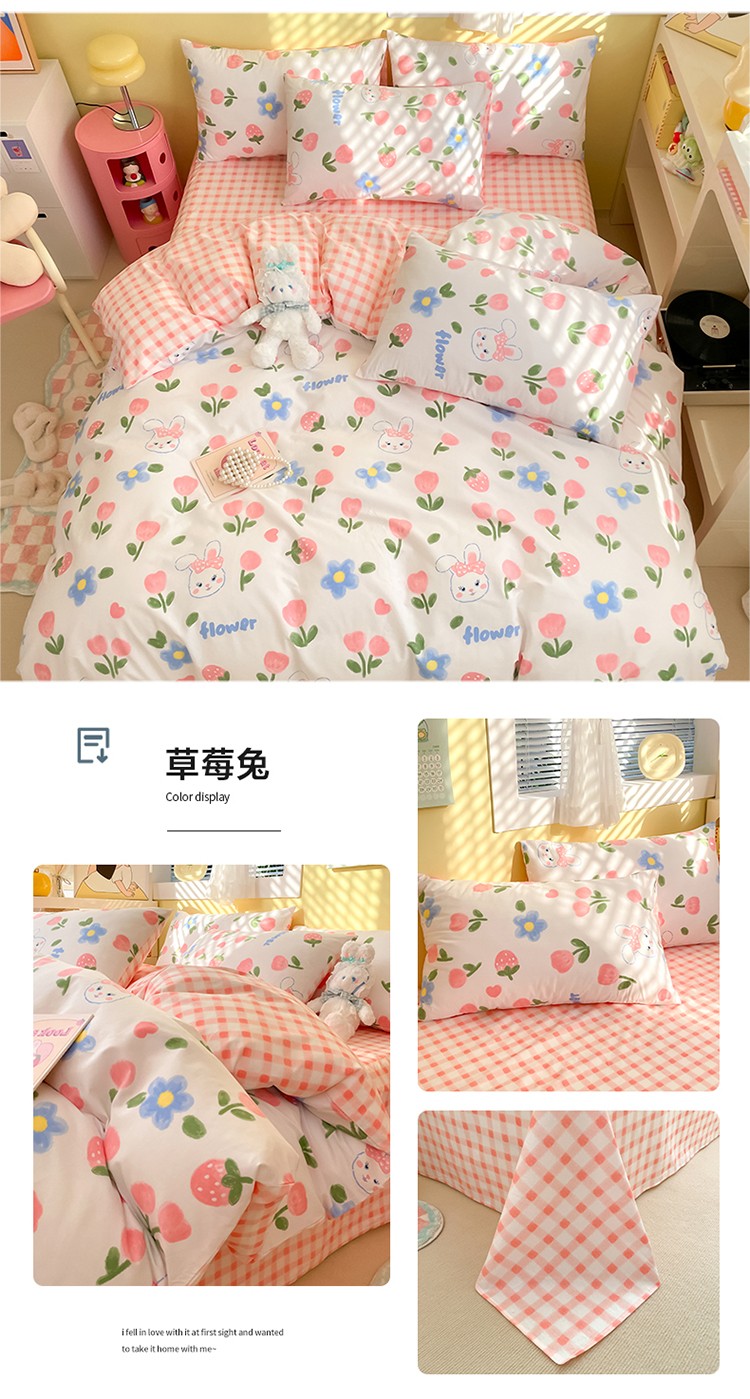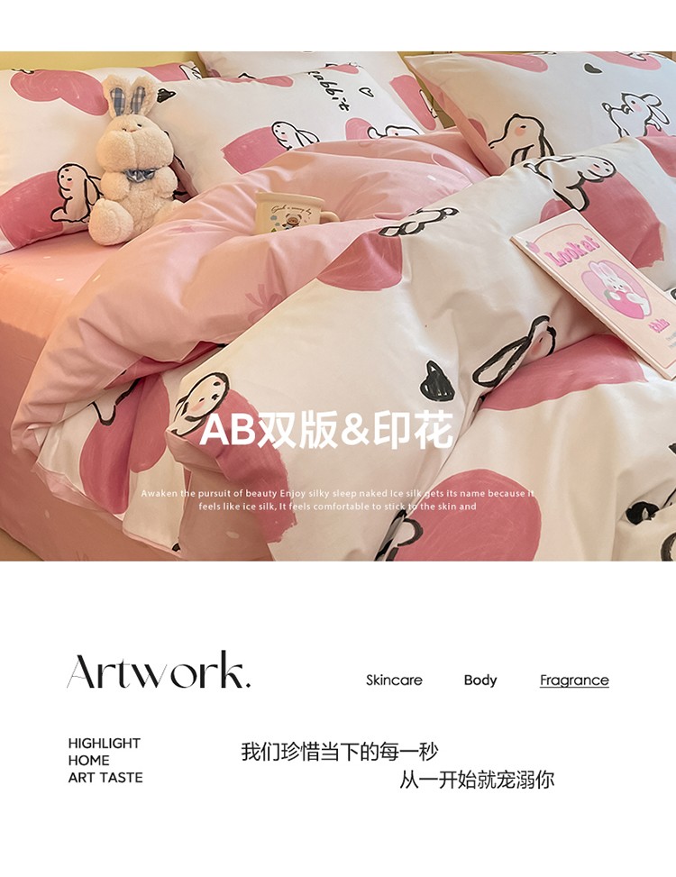 (总)雅居纺家纺 2022新款13070全棉印花四件套,草莓蝴蝶结,俄罗斯方块,黑白蝴蝶结,很嗨兔,可爱小兔,快乐花海,牛奶纹,胖胖鸭,棋盘格,日月争辉,西部恐龙,小情调,小桃桃
