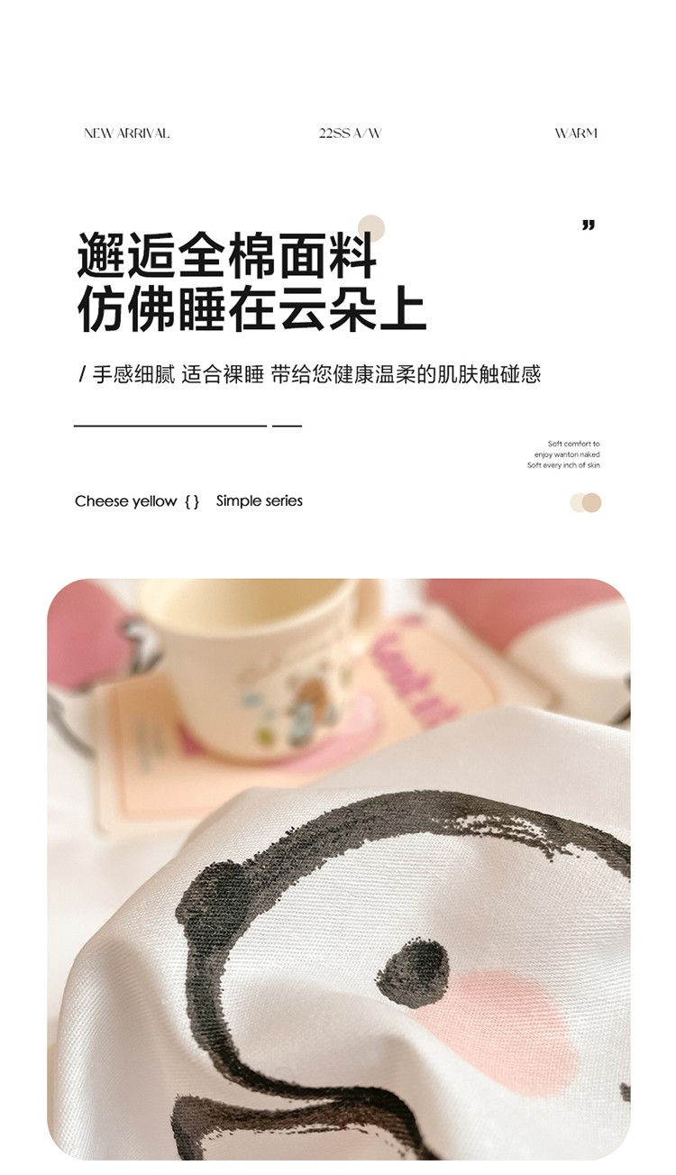 (总)雅居纺家纺 2022新款13070全棉印花四件套,波纹,多彩,简笔画,莓关系,奶油绿豹纹,倾心,数字