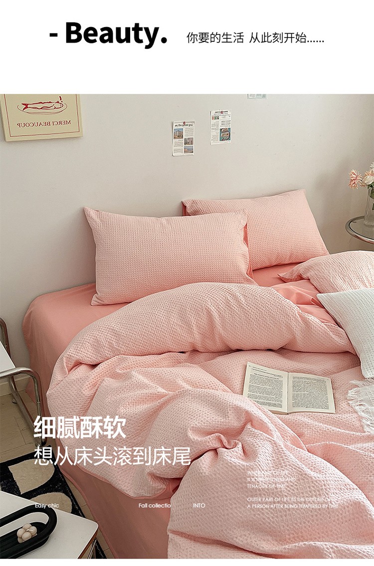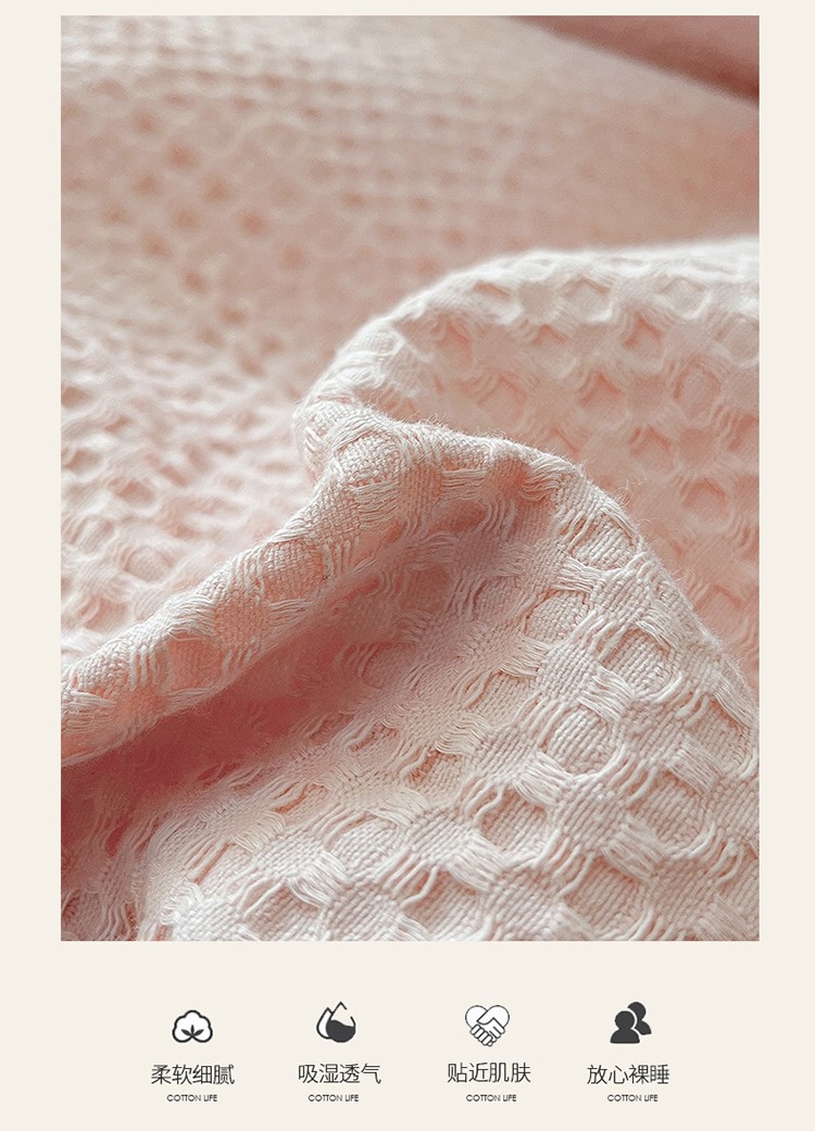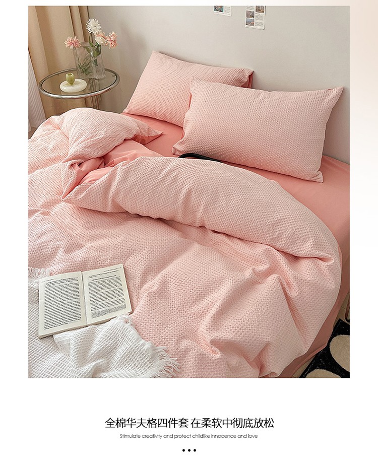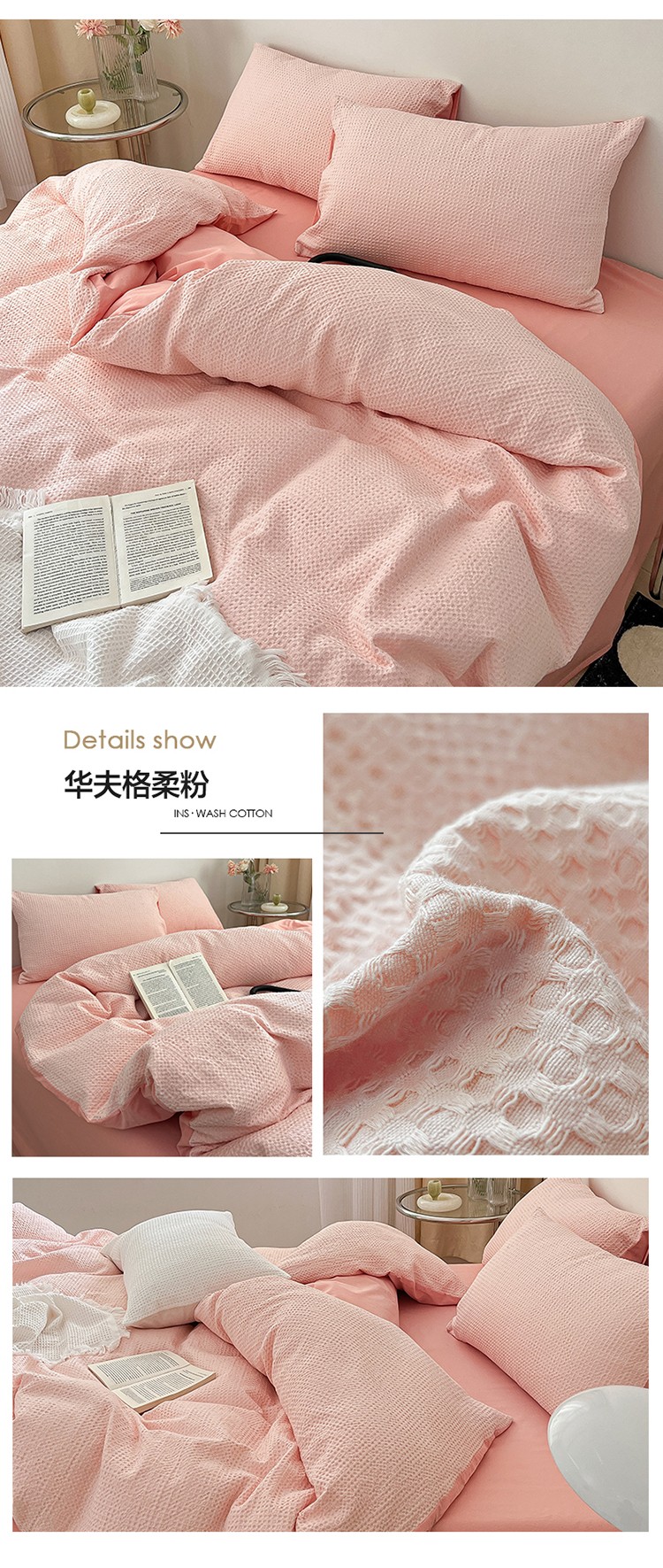 商品名称:雅居纺 2023新款全棉华夫格四件套 华夫格柔粉