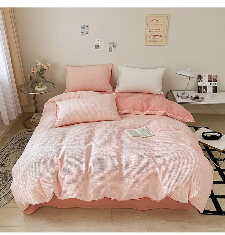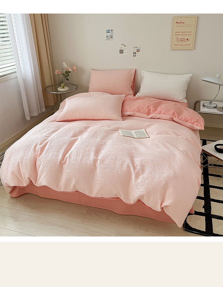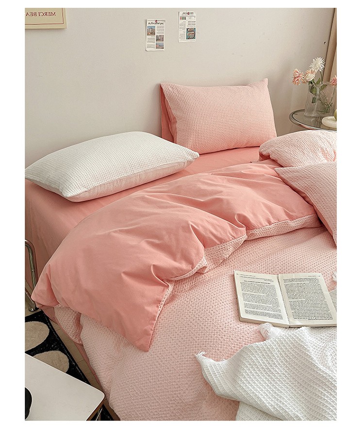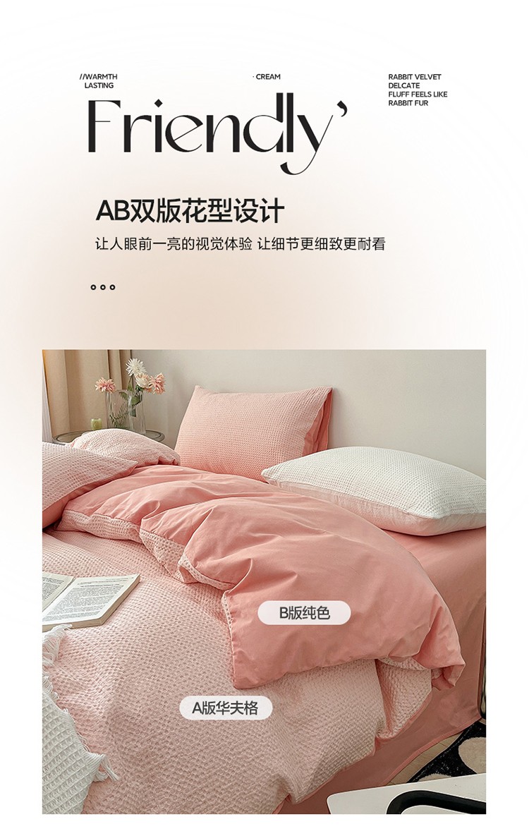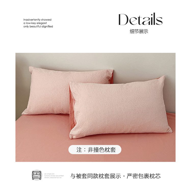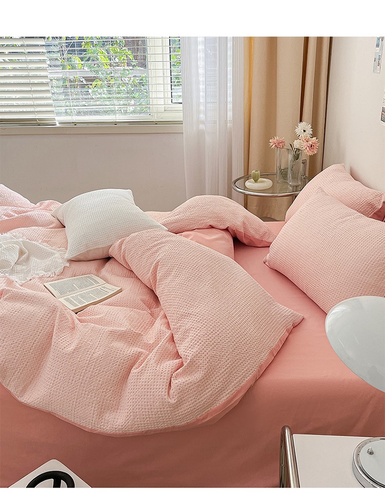 商品名称:雅居纺 2023新款全棉华夫格四件套 华夫格柔粉