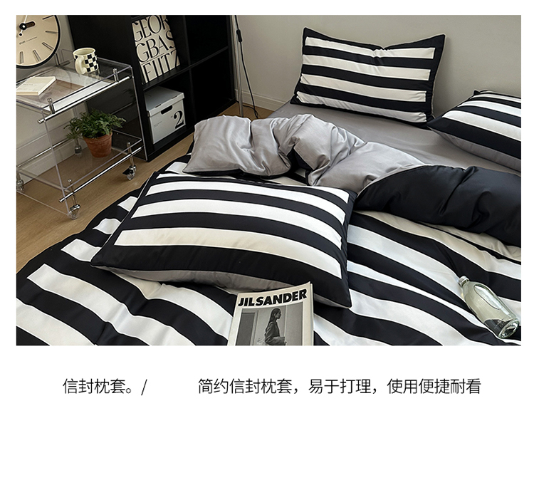 商品名称:摩卡 2024春夏新品进口水洗真丝现代简约系列四件套 周末-黑