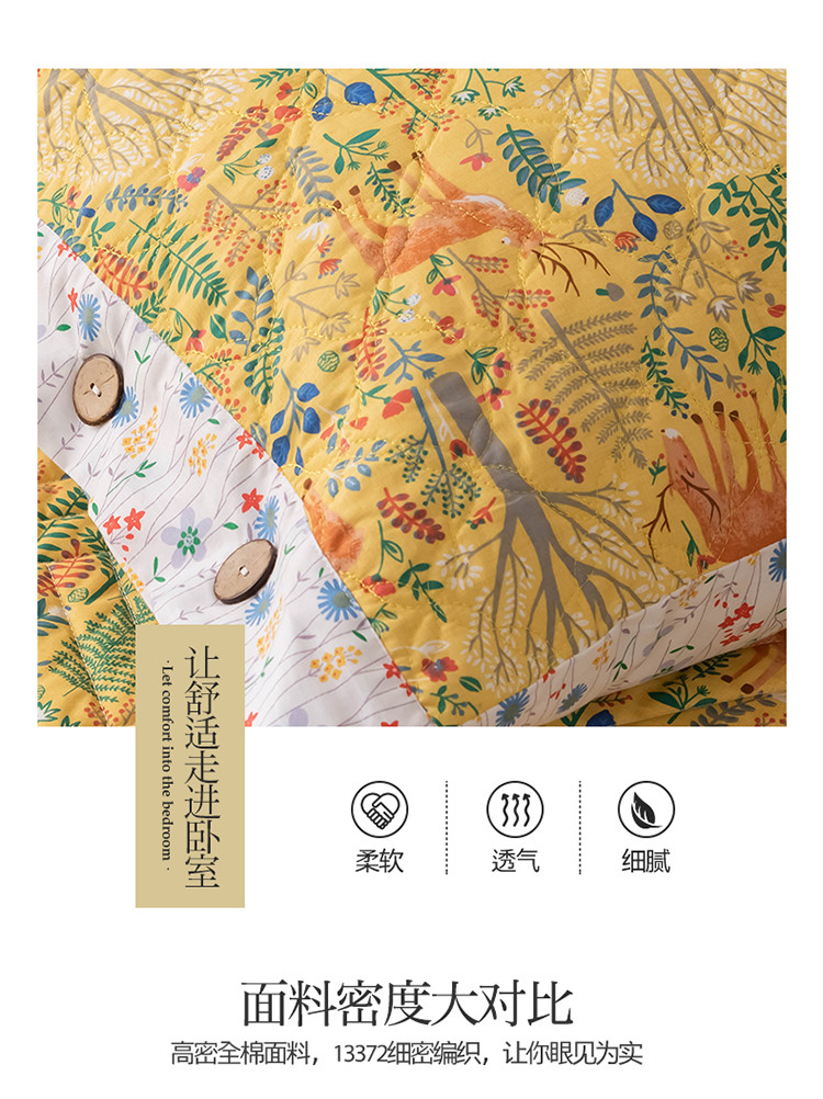 优乐家纺 2025新款纯棉印花夹棉系列床盖三件套-纽扣款新狂欢乐园,新狂欢乐园