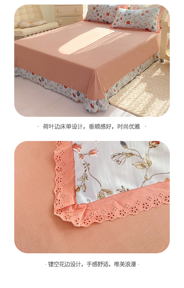 (总)艾米家居 2025秋冬新款牛奶绒泡泡印花花边四件套,豆沙条纹粉,蝴蝶花,太阳花