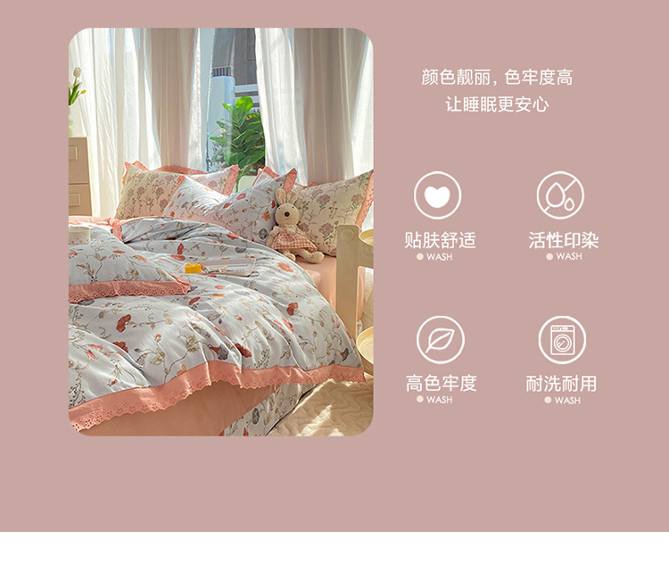 艾米家居 2025新款韩版双层花边轻奢浮雕系列水洗冰丝四件套 粉花边,粉花边